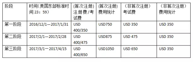 报名采用Early Bird 方案,越早报名越便宜。2017年5月FRM一、二级考试报名费用如下: