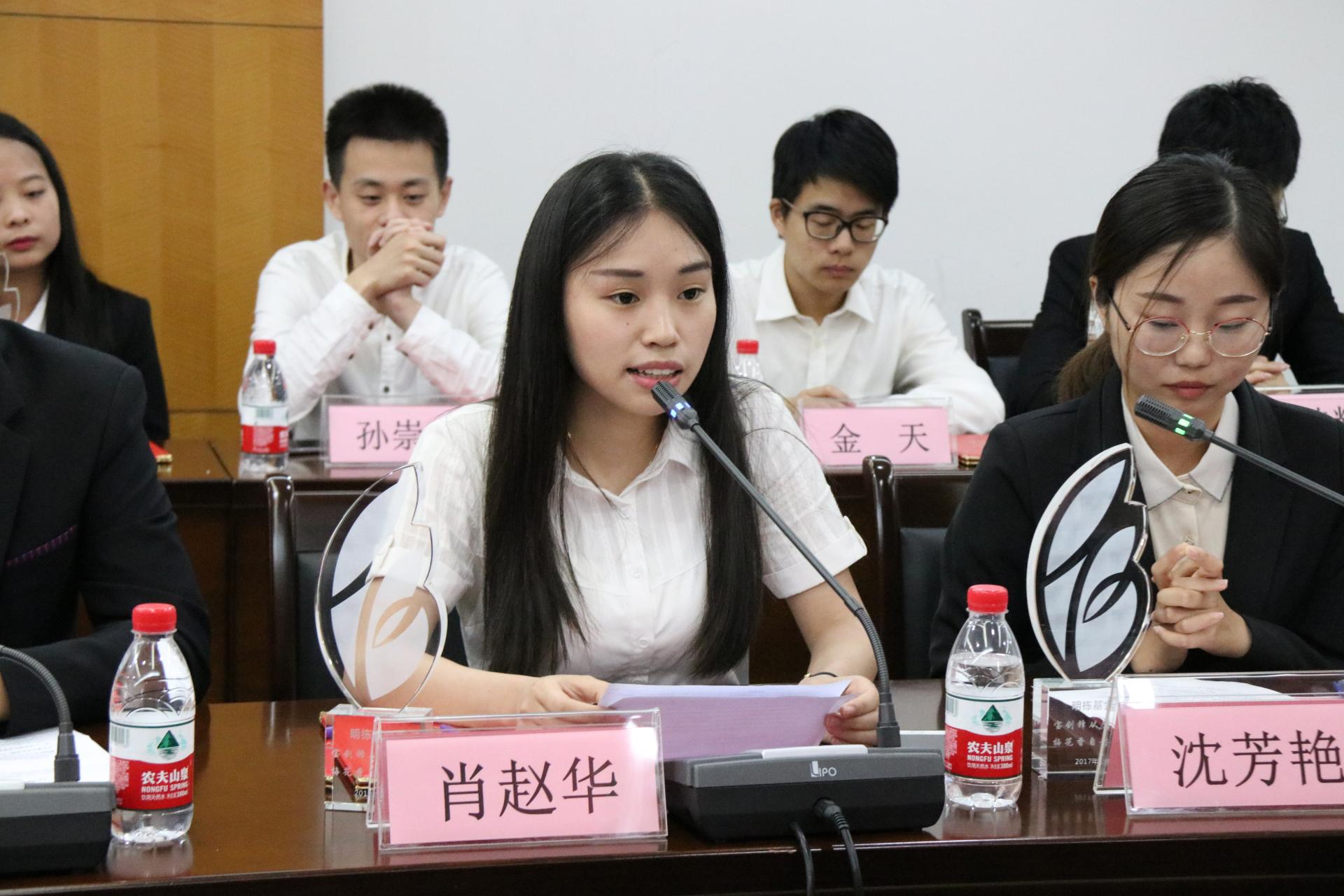 最后,进入获奖学生代表分享经验交流环节。15中英金融2班王书杰、15金融学硕士沈芳艳、14金融学硕士肖赵华、13金融学1班郑步青作为获奖代表向大家分享了自己的学习感悟和经验,对学校和校友的关怀和培养表示深切感谢。