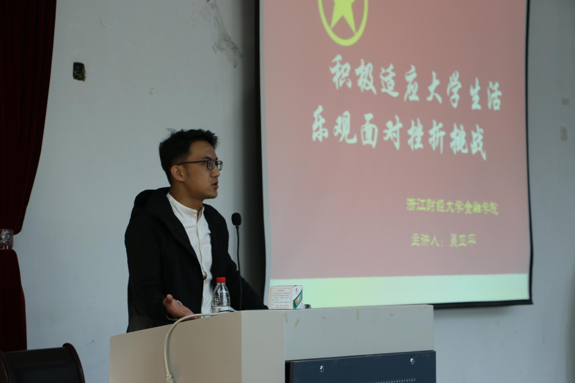 2017年团课第一讲在教学楼A101和A201教室举行,院团委书记蒋超和辅导员聂亚平主讲。