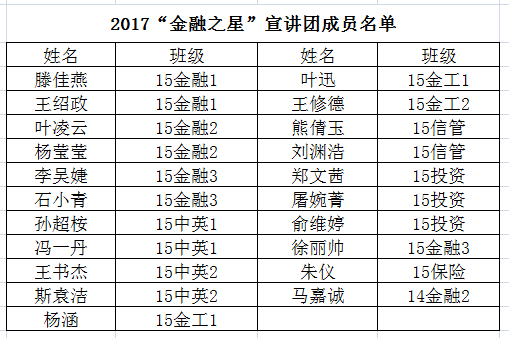 优秀朋辈人才资源,积极发挥优秀学生的榜样力量,学院在“金融之星”评比活动的基础上,组建 “金融之星”宣讲团,通过朋辈教育分享交流成长事迹,引领广大学生共同成长与进步。相信在不久的将来,一支由优秀金融学子组成的“金融之星”宣讲团将在猫都论坛