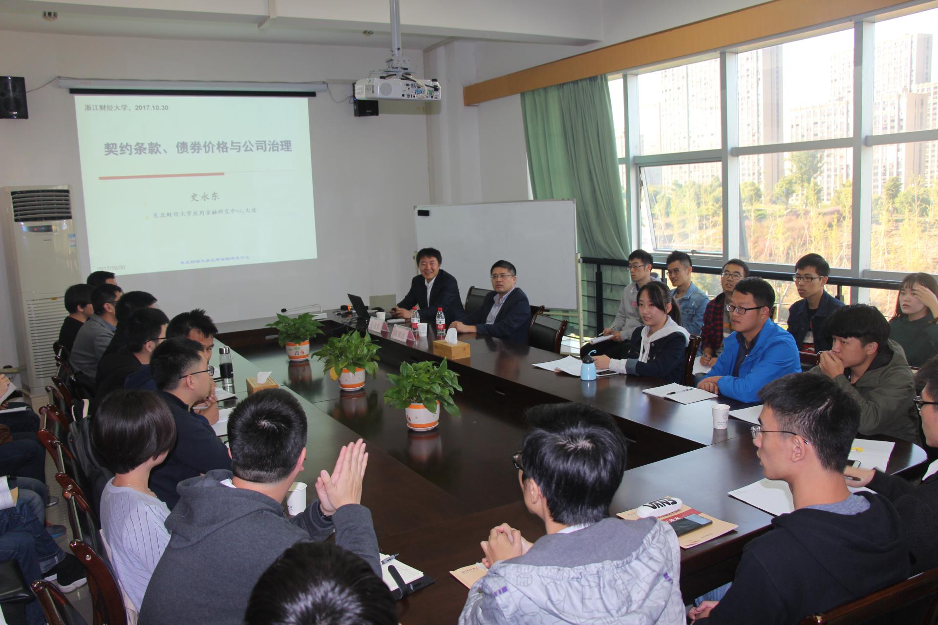 422会议室作了 “契约条款、债券价格与公司治理”的学术讲座。本场讲座由猫都论坛