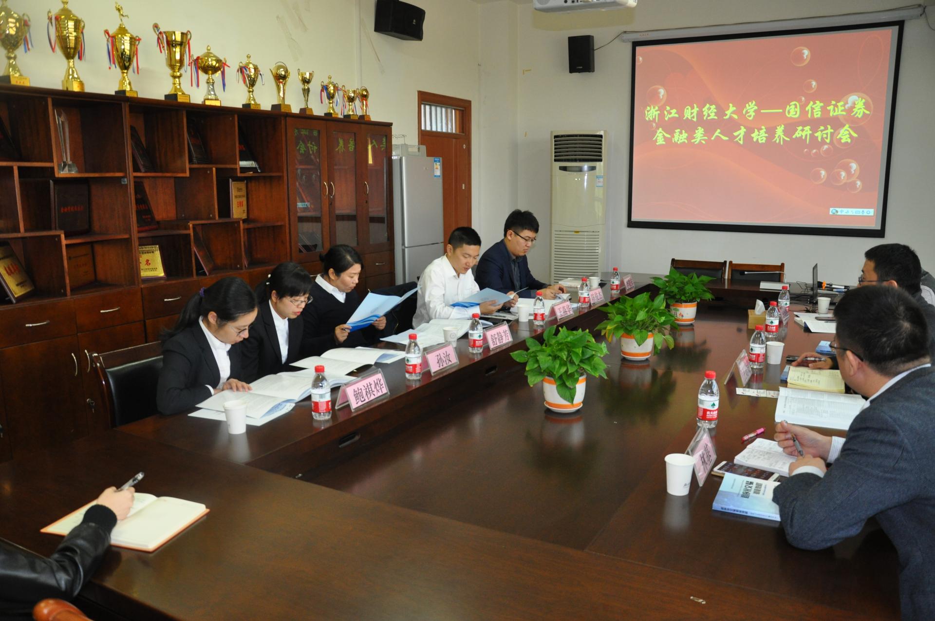 在培养方案制定中特别重视征求金融业界对人才的具体需求,并希望双方在实践基地建设、短学期课程安排、暑期社会实践、毕业实习等方面开展充分扎实的校企合作。国信证券一行负责人对此次座谈会的精心筹备表示感谢。随后详细介绍了国信证券经纪事业部的基本情况,并重点围绕新时期证券业对人才的需求、证券公司与学校的人才培养对接、培养方案制定以及毕业实习等方面提出了意见与建议。此外,双方还围绕量化交易等新兴金融领域的问题展开了深度的交流座谈。