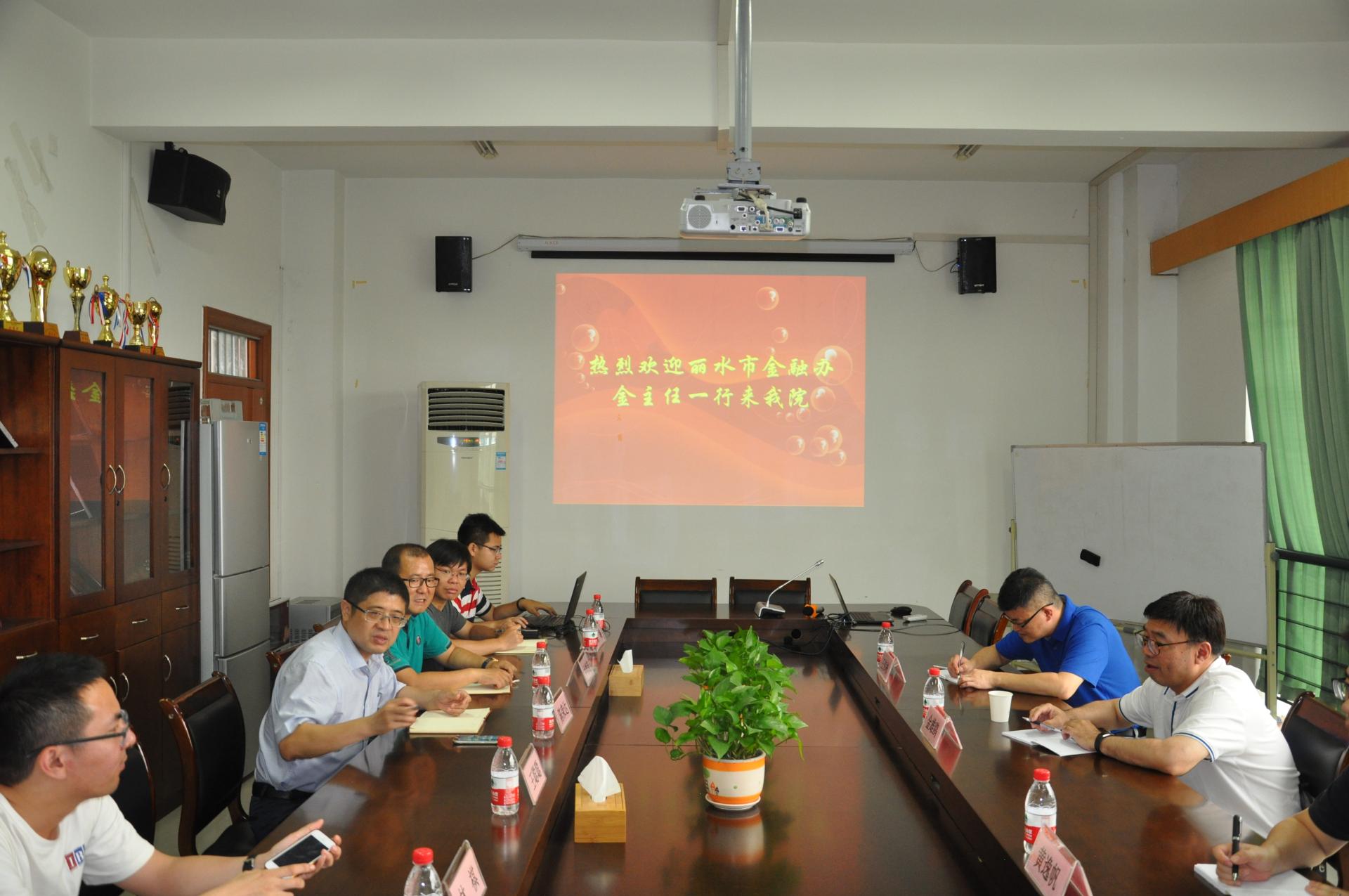 参与的与省内部分地方政府产学合作项目的相关情况。随后金雄鸥副主任详细讲解了丽水市目前金融行业现状,分析了丽水市经济发展存在的问题以及迫切发展绿色金融的愿景,希望通过发展绿色金融来把丽水市打造成习近平总书记所说的绿水青山就是金山银山的模范城市。陈荣达院长,朴哲范副院长,徐峰老师,林祺老师以及党超老师等参会人员都针对丽水市的现状发表了各自的看法并对丽水市发展绿色金融提出了建议。与会的各位教师及丽水市金融办领导都踊跃交流发言,气氛活跃。会后,双方达成了初步的合作意向。