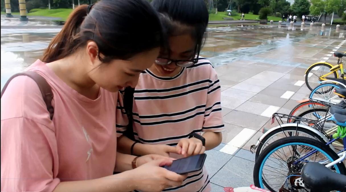 第三个场景,发生在图书馆门口。随着科技的进步,我们在日常生活中,对于如共享单车等的运用较为不熟悉的人群,我们应当主动上前帮忙解决问题。