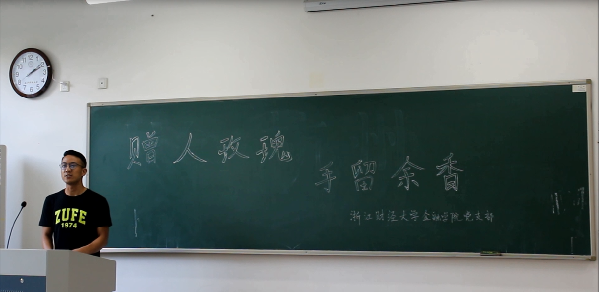 拍摄的第一个场景在教室以“赠人玫瑰、手有余香”为主题展开,除了各位“主演”、“导演”、“摄影团队”,我们也迎来了一群可爱的“群众演员”。主要讲述的是随手关灯、帮助同学、自觉整理教室等场面,大家在一片欢声笑语中愉快的结束了场景一。
