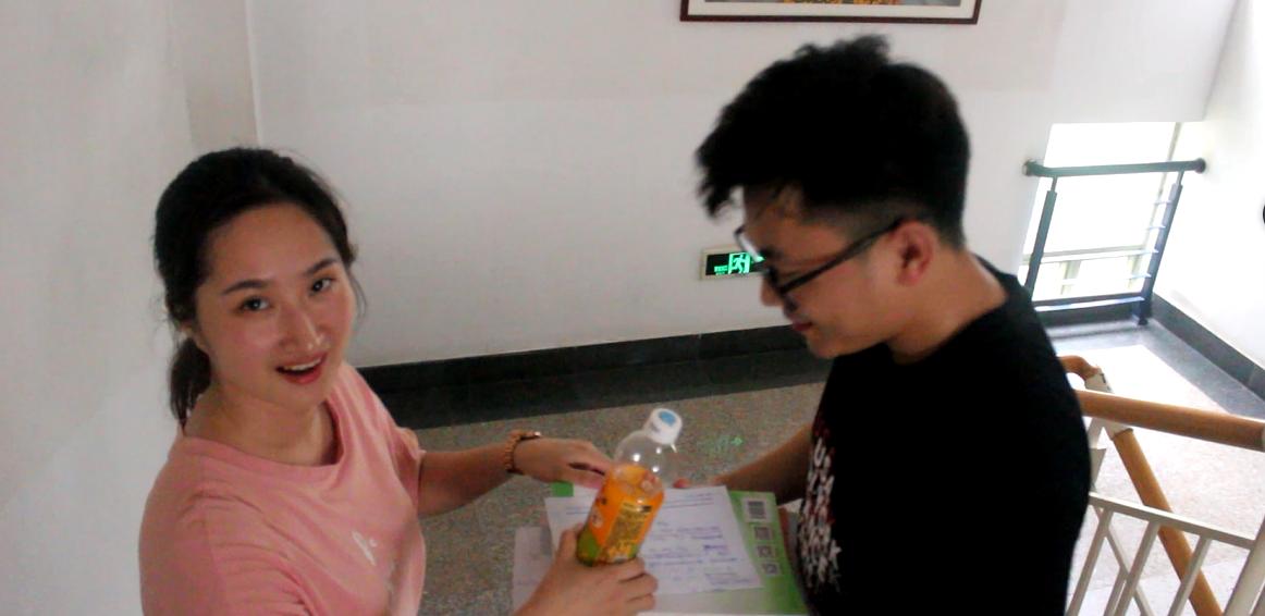 第二个场景,取景于走廊,讲述的是日常生活中,及时帮助他人的场景。天气炎热,但是各位“小演员”为了拍摄的最佳效果,还是一遍又一遍的不断拍摄,力求取得最佳效果。