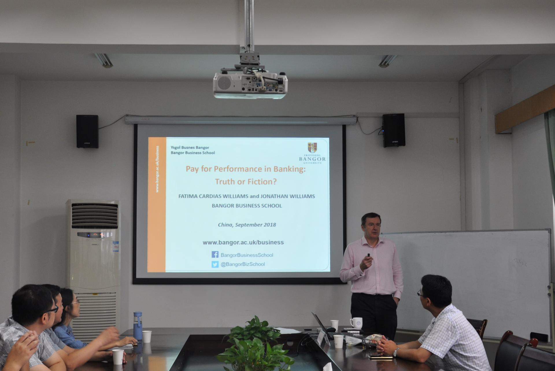 9月21日上午10点,英国班戈大学商学院院长、银行与金融专业教授Jonathan Williams教授应邀在猫都论坛