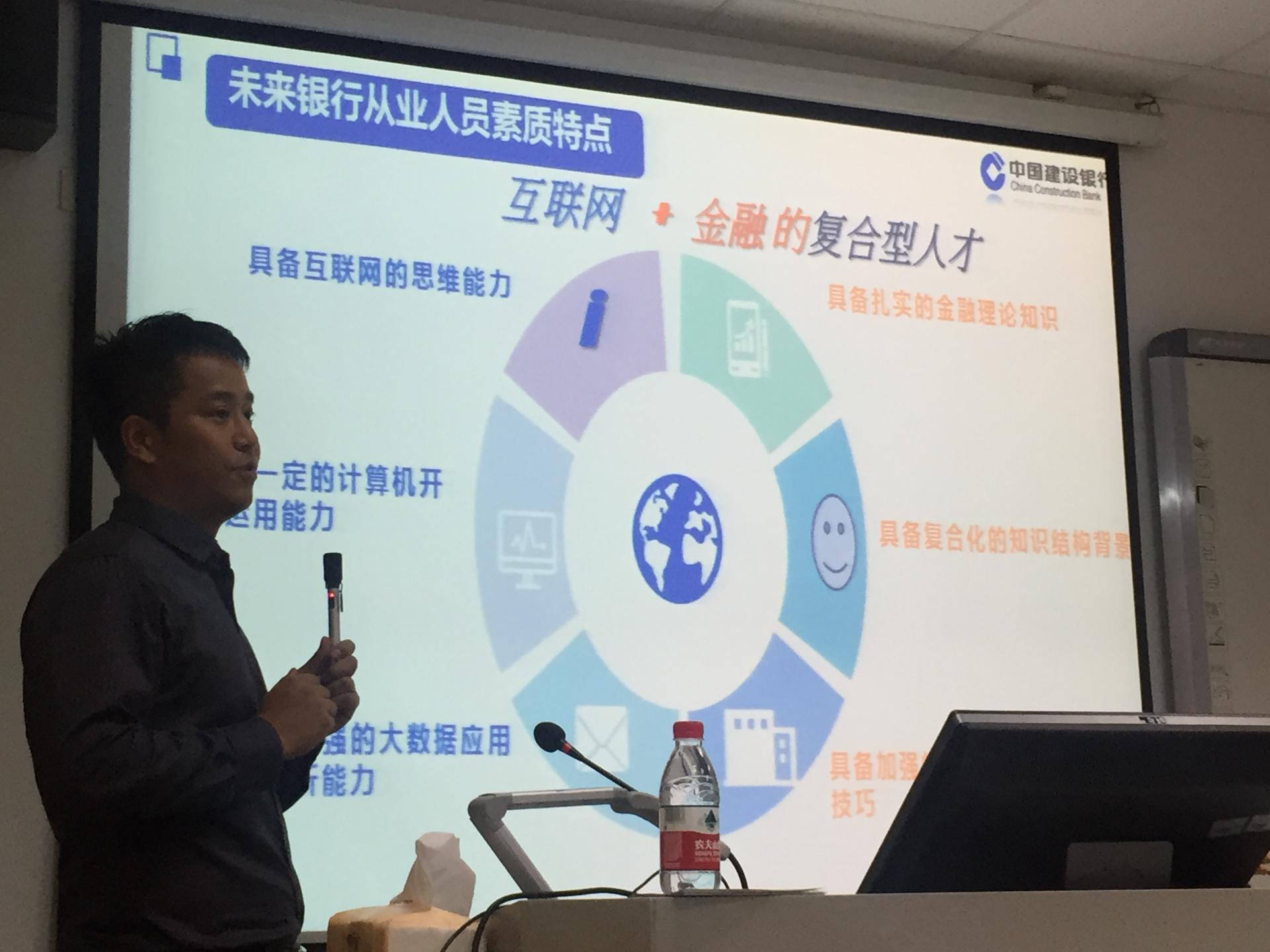 张伟副行长在中国建设银行工作经验丰富,负责过招聘、培训、个金业务等,目前承担网点管理、网络银行业务拓展等工作。张伟副行长以“金融科技”为主题,向同学们介绍了互联网金融的特点和新趋势、建设银行网络金融战略发展的情况,以及未来银行的人才需求。张伟副行长的授课内容新颖,让同学们了解了银行面对互联网金融的竞争压力,以及银行寻求发展空间的路径。授课结束后,张伟副行长和同学们进行了互动交流,讨论了金融专业的学生如何适应现代银行的人才需求、银行推广新的服务方式过程中有哪些困难等问题。