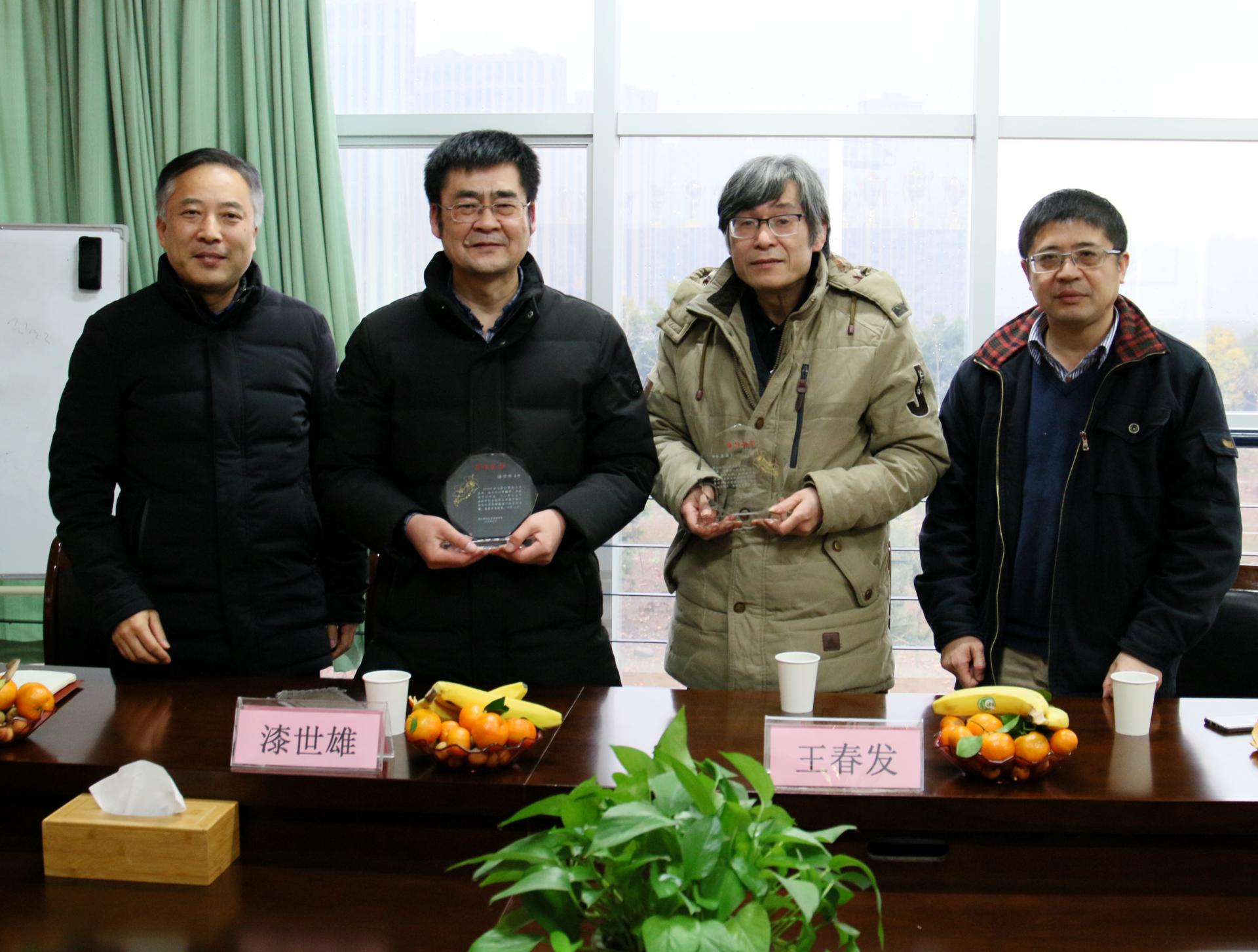 陈荣达院长代表学院向王春发和漆世雄两位教师表示了衷心的感谢,感谢他们为学院学科建设、专业发展、教学科研和人才培养等各方面做出的不懈努力和贡献。学院的蓬勃发展和长足进步凝聚着老教师们的汗水和心血,离不开老教师们的支持,学院不会忘记老教师们,会一如既往地关注退休教职工的情况。