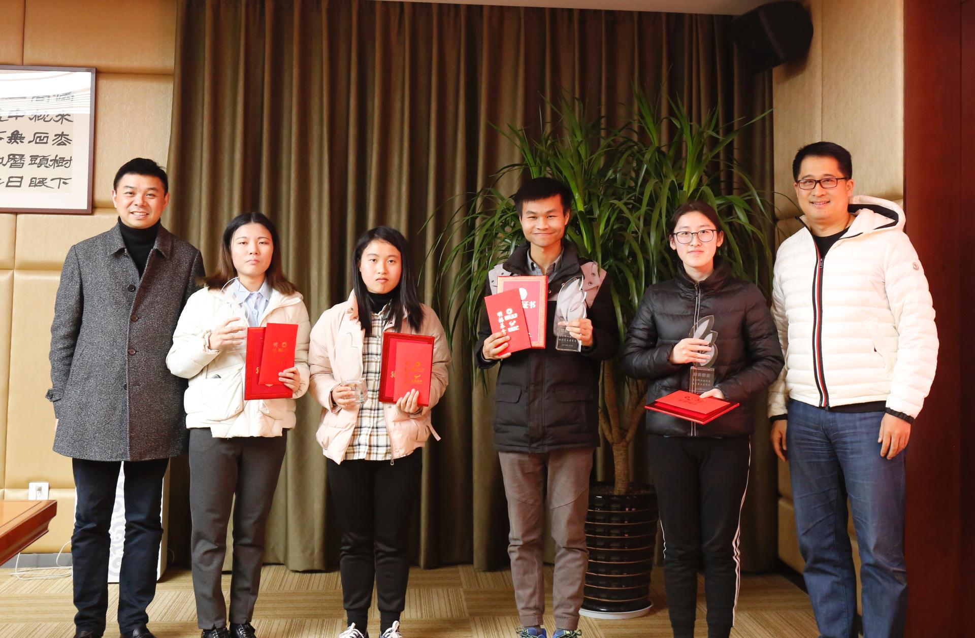 王晓明、楼栋两位校友为获奖学生颁发获奖证书及奖杯