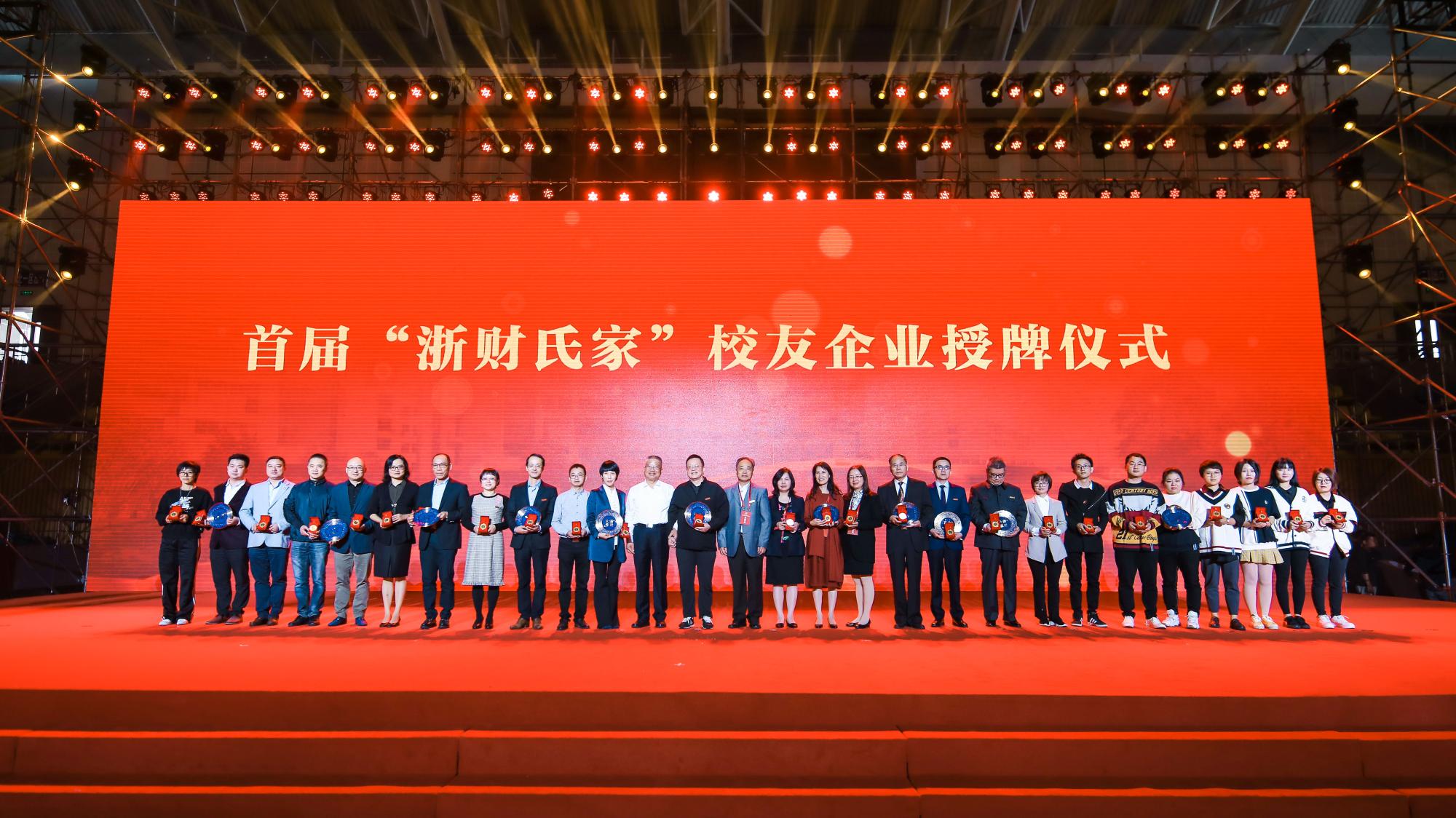 校友企业蓝山投资有限公司、浙江盈阳资产管理有限公司被授牌“浙财氏家”。1992届投资经济管理班孙建江校友、1997届投资金融班戴水君校友、2005届金融1班杜飞磊校友获“最美校友”殊荣。