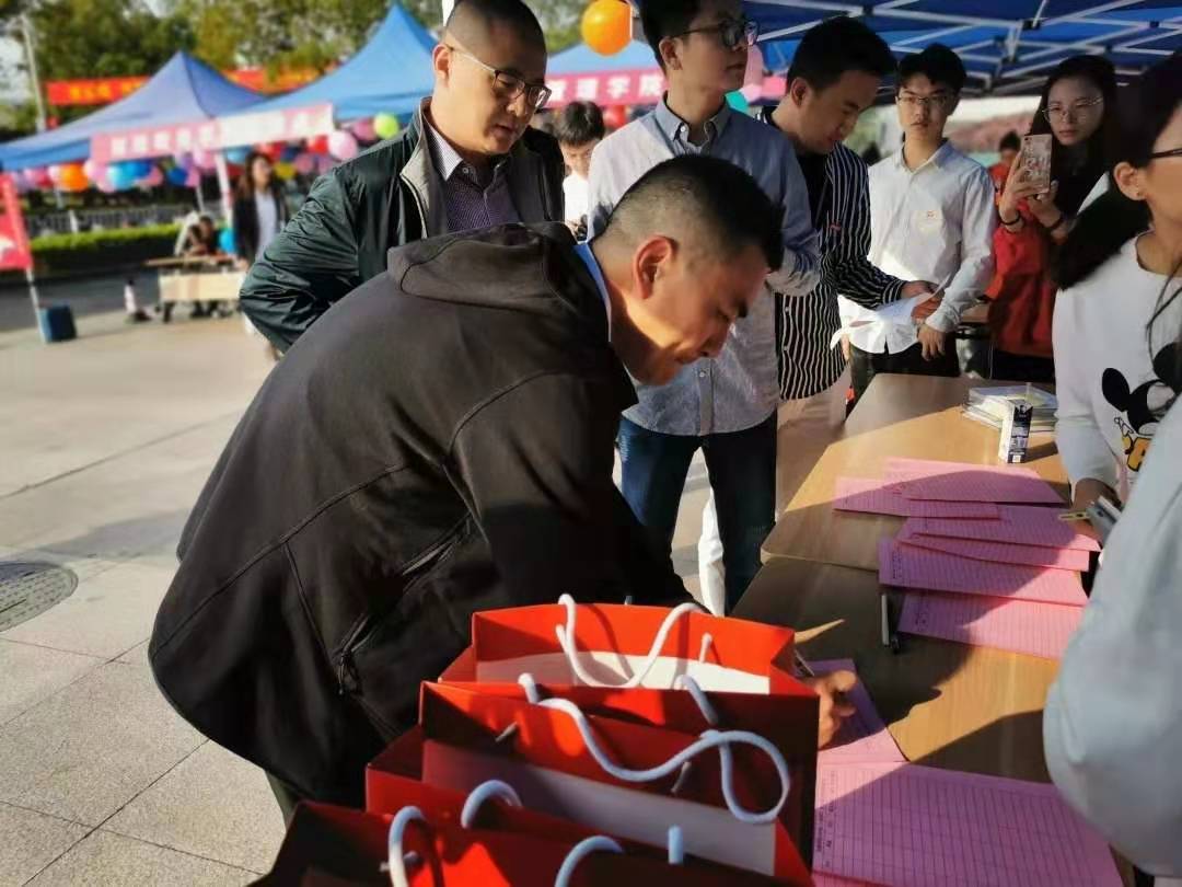 11月2日早上,学院领导老师和志愿者们在接待点早已准备就绪迎接校友回家,全体师生以饱满的热情接待到访校友,与校友们交谈、合影留念。
