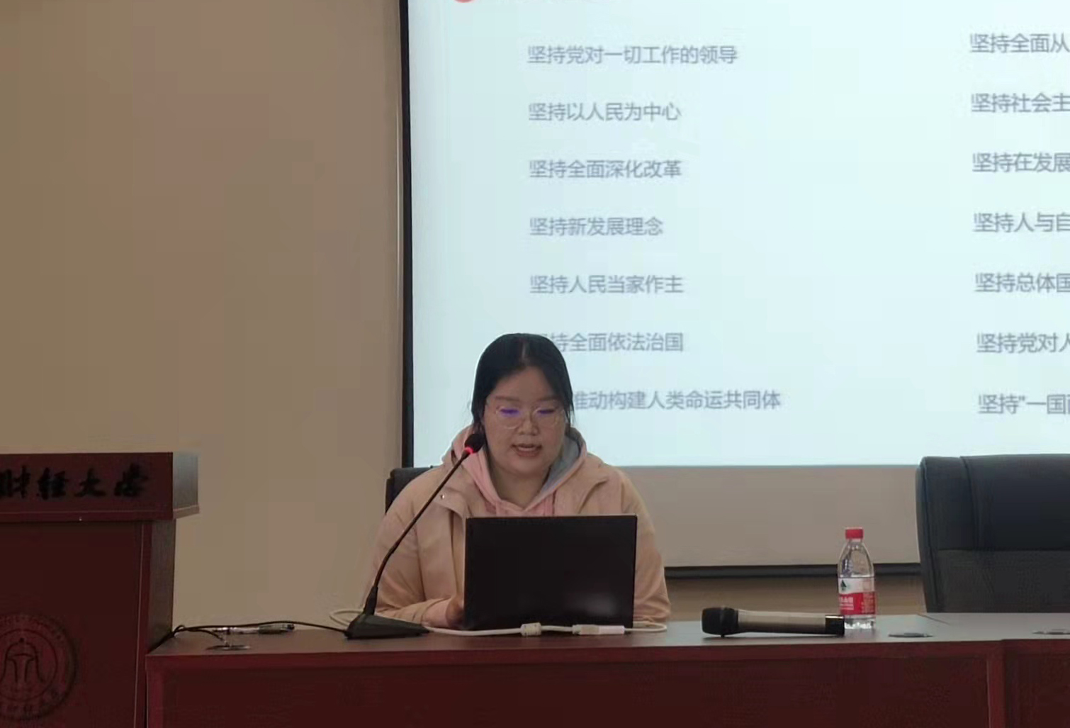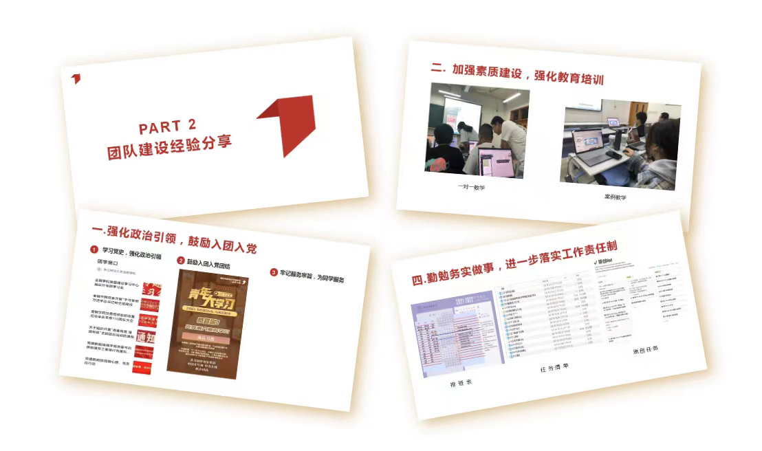 颜玉杰同学以分享《习近平与大学生朋友们》读后感开篇,通过阅读可以真切感到人民领袖对青年一代的亲切关怀和殷切希望,为自己走好人生路指明了正确航向。接着她带领大家从“八个明确”和“十四个坚持”入手,加深对习近平新时代中国特色社会主义思想的理解。最后她分享了作为媒体策划部负责人进行团队建设的经验,她认为建设好部门可以从思想引导、教育培训、落实工作责任制、加强纪律建设和增加日常关怀五个方面进行。媒体策划部曾获得2021年“金融之星”团体荣誉,在2020年学生会部门考核中获得“优秀部门”荣誉称号。