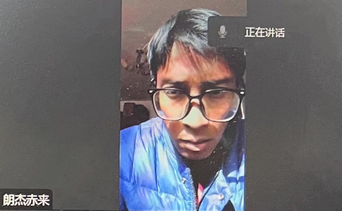 随后,十位因疫情未返校的学生轮流发言,他们分别从家乡的疫情情况、生活现状、学业规划等方面进行了介绍,同时提出了自己目前所遇到的例如线上学习氛围、网络信号、期末考试等问题,学院老师们感受到了同学们当前的不易,并针对同学们交流发言中的问题和疑惑进行了耐心细致的解答,鼓励同学们用积极的心态面对疫情。