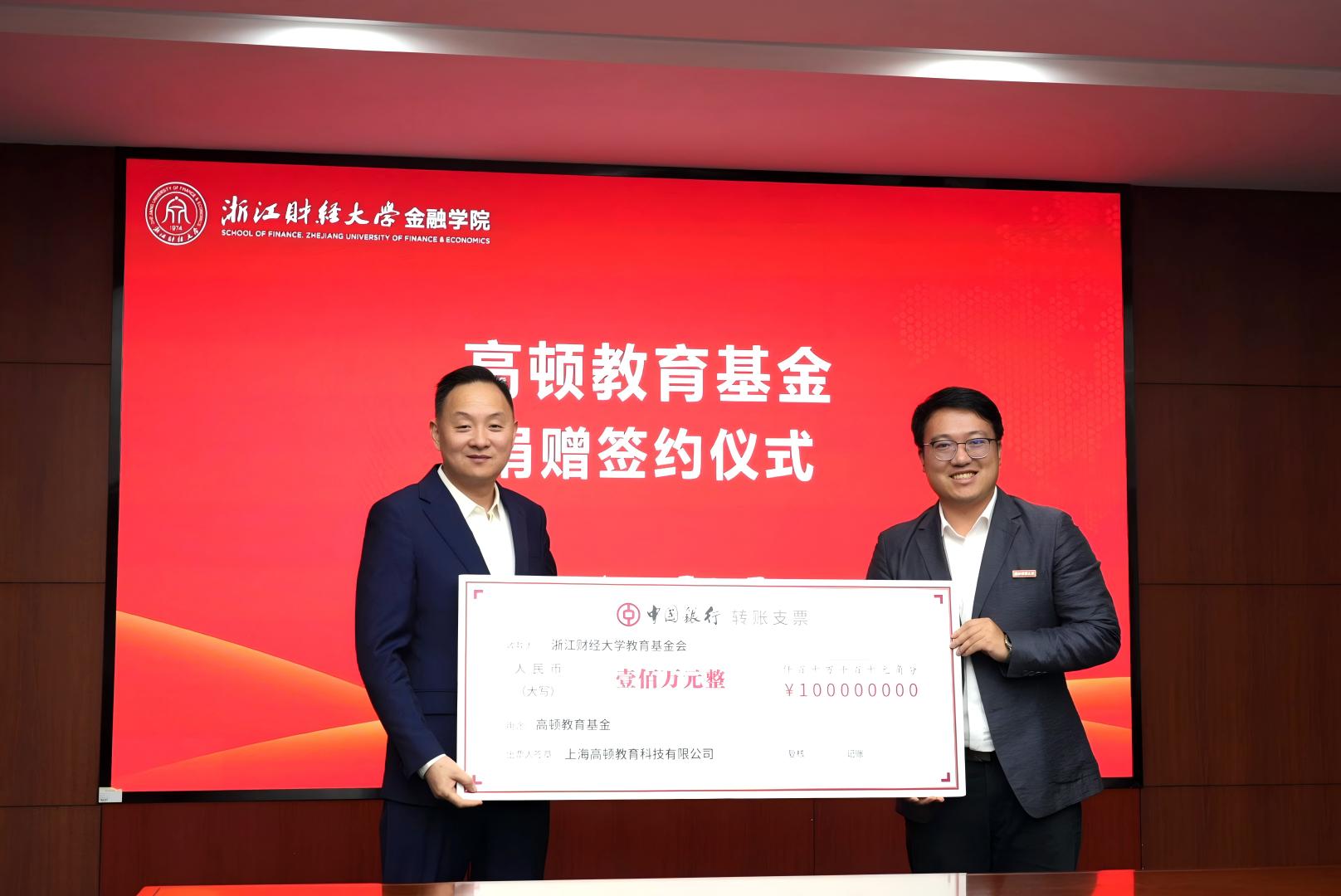 多年来合作取得的丰硕成果,期待以“高顿教育基金”设立为契机,进一步深化产教融合、协同育人,共同推动学校事业高质量发展。