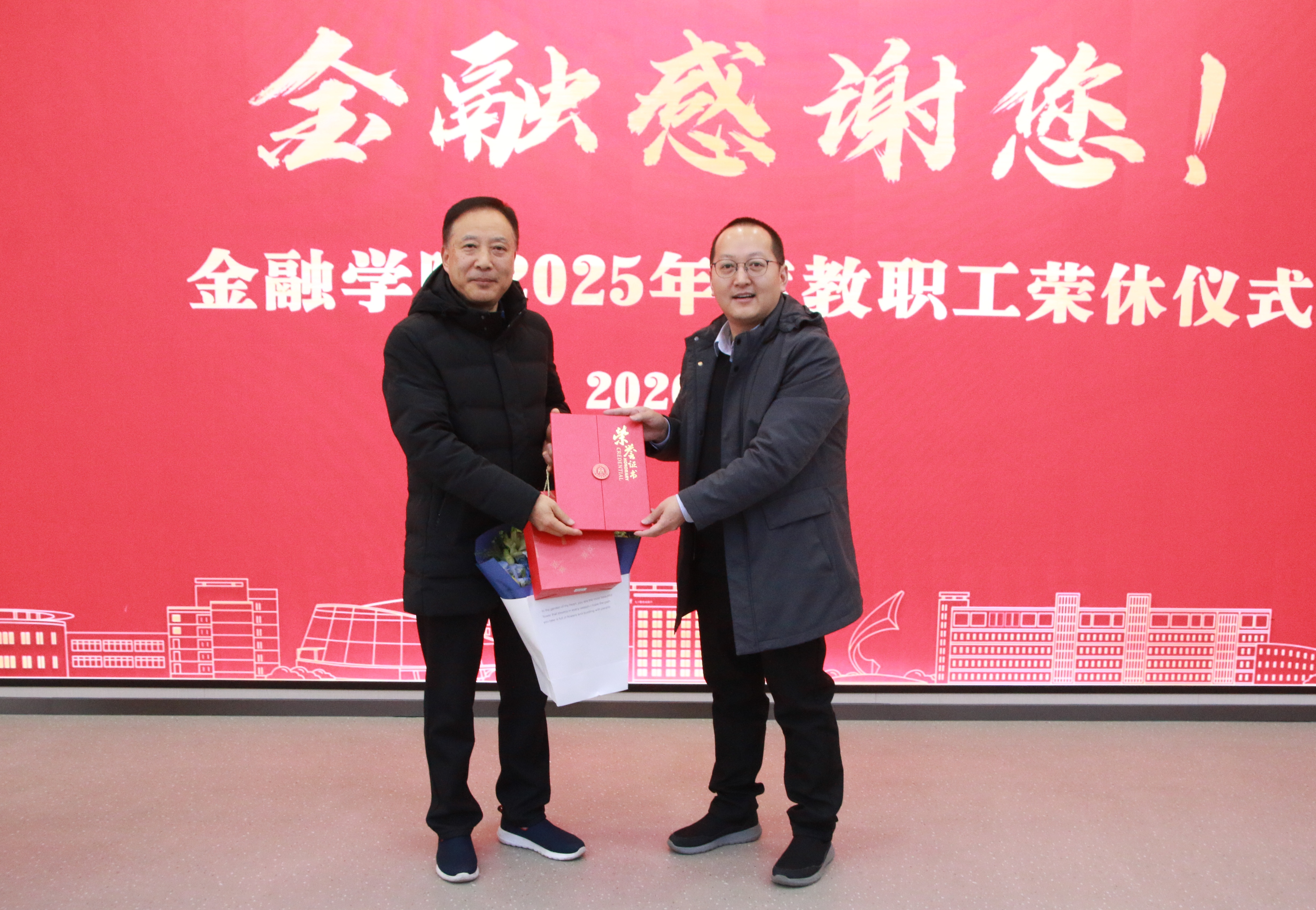 、盈阳金融科技学院党政领导班子向全体教职工一年来的辛勤付出和大力支持表示衷心感谢。他指出,过去一年两院在党建引融、学科建设、人才培养、社会服务等方面取得了显著进展:党建工作持续深化,“新财经”战略稳步落实,师资结构进一步优化,科研项目与高水平成果数量稳步提升,学生就业与深造率取得新突破,这些成绩凝聚着每一位教职工的智慧与汗水。他强调,面对新阶段的发展机遇与挑战,全体教职工要进一步增强凝聚力与向心力,继续保持奋发有为的精神状态,协同推动两院各项事业持续高质量发展,为建设高水平财经大学作出新的更大贡献。