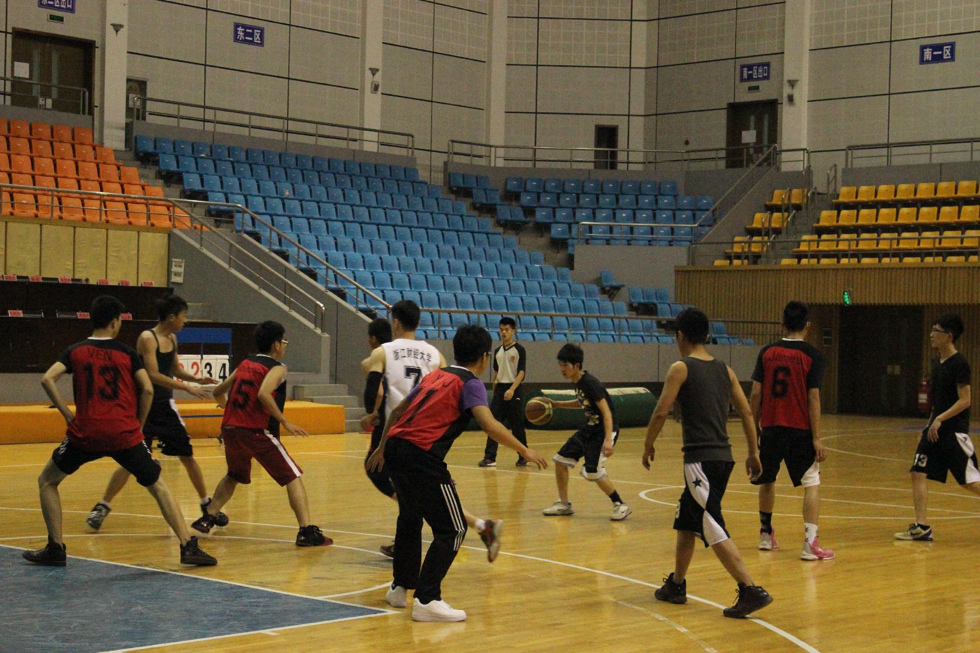 第三节的比赛更为激烈,场上球员虽显疲惫但仍然斗志昂扬,不仅仅是进攻卖力,防守可也一点也不含糊。双方都发挥出色,比分几乎没有拉开差距。传,接,跃起,投球,一气呵成,双方快攻时矫健的身姿和流畅的动作引起了场外观众的阵阵掌声和喝彩声。随后,大四联队借着一记漂亮的空心3分球39:38反超12金工1班队。