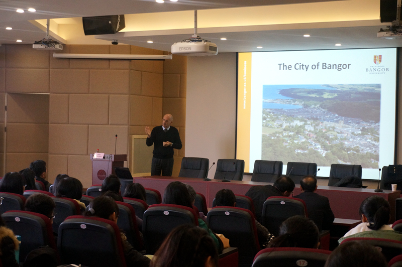 John Thornton教授首先介绍了班戈大学商学院的现状和办学特色,尤其是介绍了该院教学和科研相互促进的成功模式,通过短短数年时间,以精悍的师资队伍,打造了英国甚至是欧洲一流的商学院。他还对商学院的金融、会计、管理等几大领域也进行了分类介绍。
