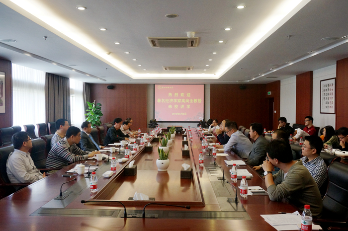 在报告会中,高教授分析了金融在国民经济发展中的重要地位和作用,对浙江省经济发展形势作了分析,高度赞扬浙江的“五千精神”,阐述了自己对互联网金融为代表的金融创新的看法。同时,高教授对如何办出一流的猫都论坛