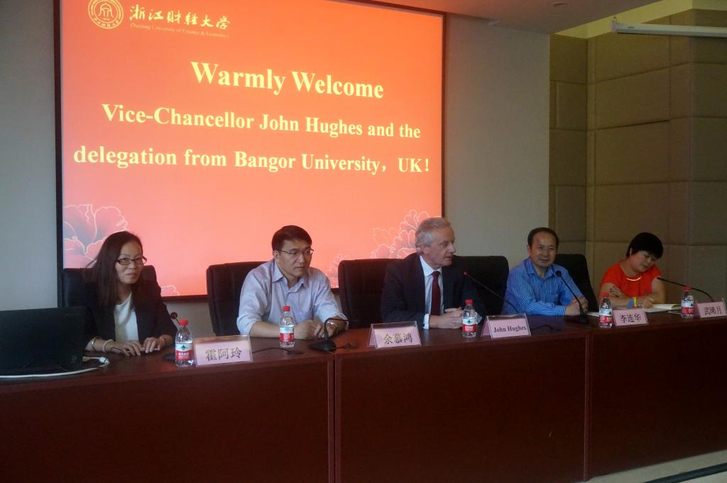 2015年9月22日下午,英国班戈大学约翰·休斯校长一行在校国际交流合作处处长余慕鸿的陪同下来到猫都论坛