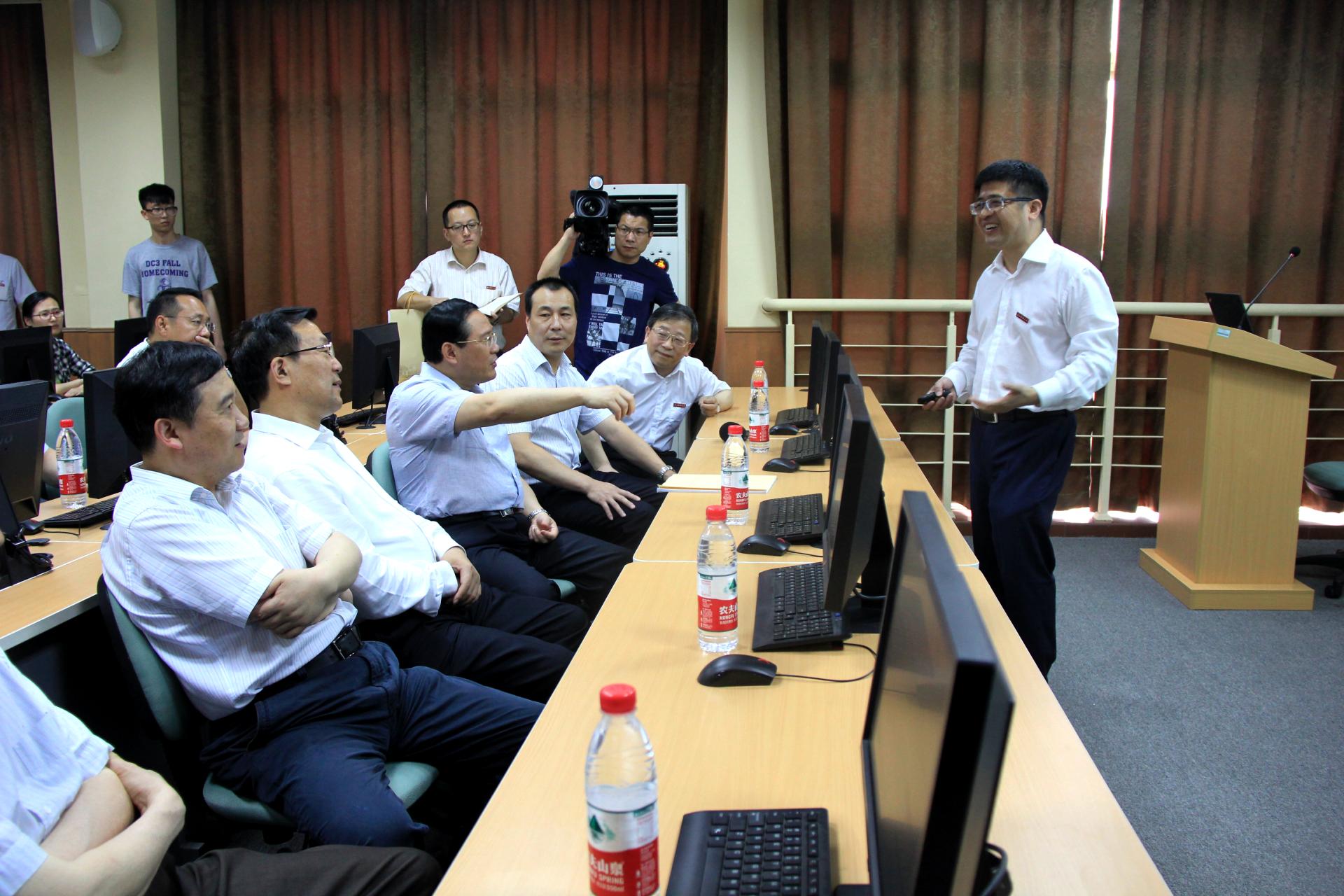 党委书记蔡国金关于学院专业建设、人才培养、就业校友情况等方面的汇报,并与正在实训基地上课的鲁莹老师和同学们进行了交谈,了解学院实践教学方面的一些具体情况。