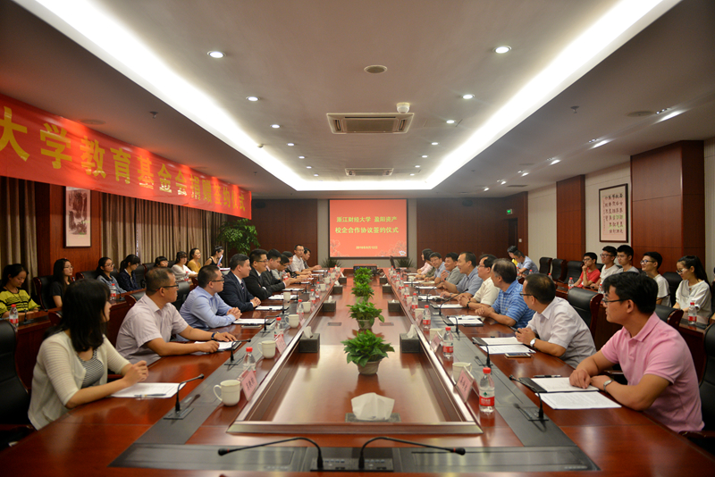 2016年9月12日下午,我校与浙江盈阳资产管理股份有限公司校企合作框架协议签约仪式在下沙校区举行。盈阳资产创始人楼栋校友、总经理孔繁岗校友、副总经理傅夷校友、副总经理丛榕,校党委书记李金昌、副校长黄建新,猫都论坛