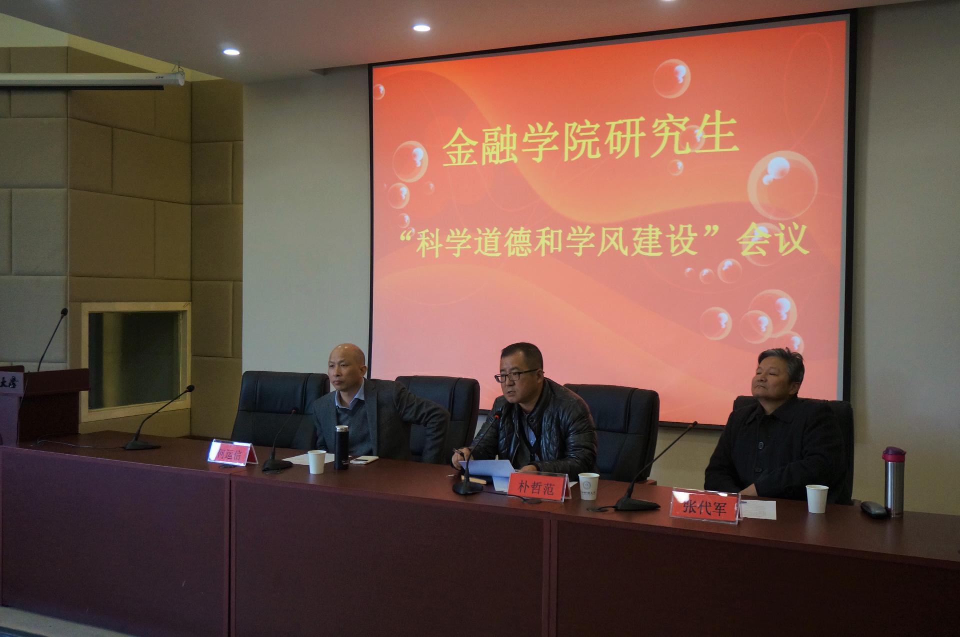 朴哲范教授首先在会议中指出,目前研究生因过分关注实习、考证而对学术不认真的现象时有发生,因此学院有必要进行科学道德规范,对学术不端行为进行严厉惩处,并且结合具体事例告诫同学们要积极转变学习态度,提高研究意识,将自己的观点讲好,文章写好。接着何运信何教授从三个方面对如何在读研期间提高学术水平给予指导,分别是打好理论基础、正确处理兼职和学习的关系、通过阅读文献发现研究热点和创新点。随后张代军教授代表全院教师表达了对同学们的殷切期望,他指出研究就是一个不断更新认知的过程,希望同学们将科学、艺术、技术三点结合起来,通过研究去了解问题、发现问题,从而解决问题。
