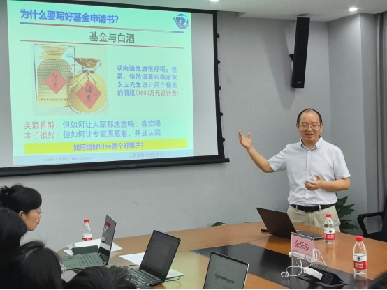 会议上,余教授分享了如何申报国家级项目以及如何去撰写一个有价值的项目申请书。主要从四个核心方面去阐述本次会议的核心内容,分别是:立项依据、研究内容、研究方案、研究基础。余教授把这四个核心内容简称为“4W”问题,每一个“W”下又会分为几个小点。余教授以清晰的逻辑和精简的语言勾勒出了国家级项目撰写框架,全面剖析了申报书的撰写技巧,不仅为在场师生提供了全面的申报指导,同时也为老师们在之后的研究中提供了新的思路与方法。会议最后,林祺副院长进一步勉励大家要鼓足干劲,提升信心,认真修改打磨申请书,提高申请书质量,力争学院2025年度国家级科研项目立项获丰收。