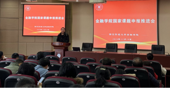 林祺副院长首先向大家介绍了学院的学科建设现状,梳理了近几年学院在课题申报、论文发表、奖项申报、著作出版等方面的成果情况,并分析了学院金融学科建设的优势以及所面临的机遇和挑战。在此基础上,林院长强调了科研工作对学科建设和学院发展的重要支撑作用,并要求符合申报条件的老师在国家级课题申报要做到“应报尽报”,在学校和学院前期组织的申报指导基础上抓紧时间打磨精炼自己的国家级课题申报书,学院近期也会继续组织专家开展申报书的论证工作。最后,林院长指出,无论从教师个人发展角度,还是从学院实现高质量发展的需要来看,科研都是重要的支撑力量。学院将为老师们提供全方位的服务保障,同时也祝愿老师们顺利拿到国家级课题,促进个人职业生涯成长,为学科、学院、学校高质量发展作出应有贡献。
