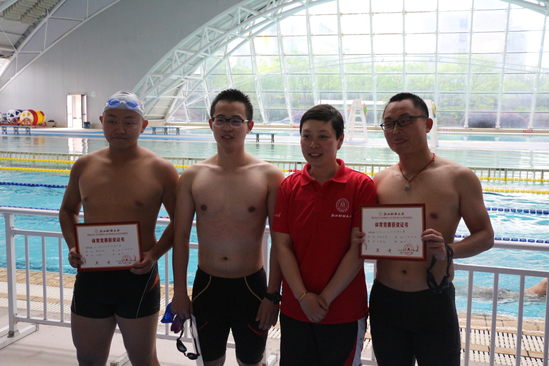 朱仪同学勇夺女子50m蛙泳与自由泳冠军;杜喻海同学包揽男子50m蛙泳与蝶泳亚军、50m自由泳季军;柳毅飞同学获得男子50m仰泳季军。