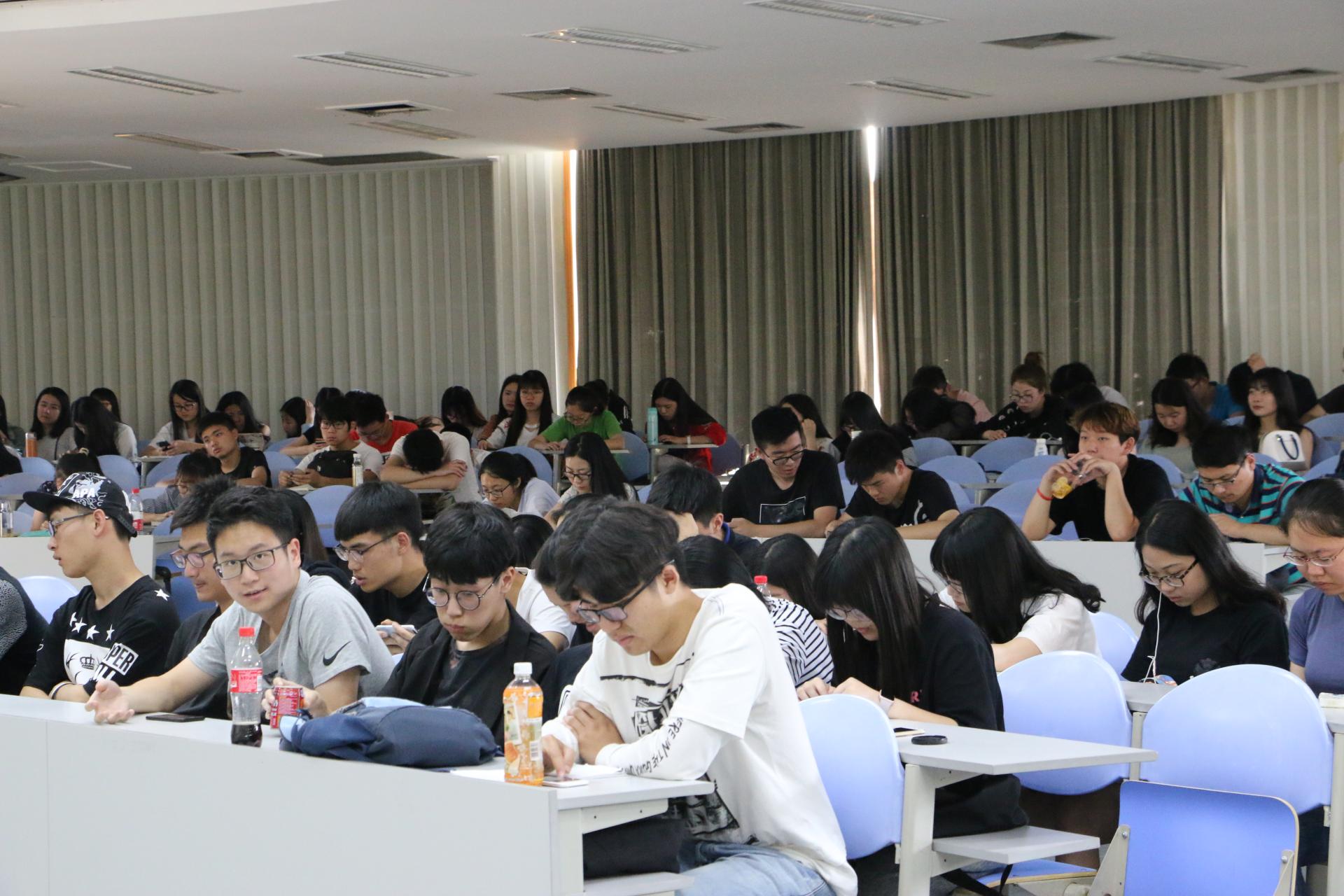 与此同时,聂亚平老师也于C206开课。首先,聂老师介绍了“一带一路“的基本内容,并分析中国经济形势。他从各个方面细致地向大家介绍了“一带一路”的具体情况,并播放了与之相关的视频。在座的同学们认真听讲,并对国内外的形势与政策有了更深刻、更全面、更真实的了解。