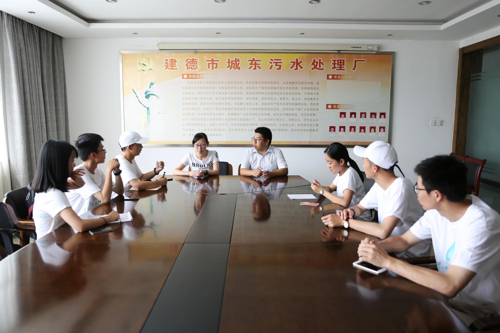 实践团走访了建德市污水处理厂,该厂实现了监测、预警、开闭、记录等污水处理全套流程的高度自动化,即使在凌晨,污水净化也能继续进行。