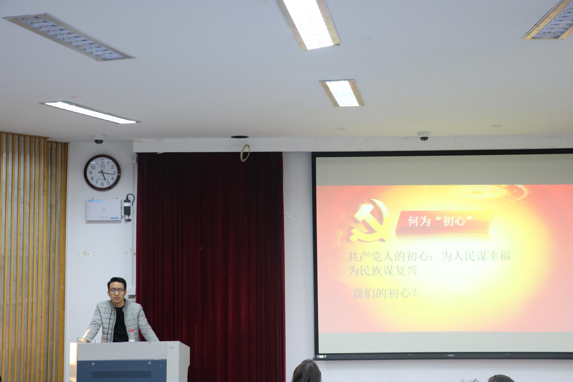 王伟伟老师分享了对于十九大精神的理解,详细介绍了十九大的主题,并通过一段视频,深刻地阐释了十九大报告中的“四个新”——新时代,新思想,新目标,新征程的意义。王老师谈到,当代大学生,是国家富强,民族复兴的希望,并鼓励同学们认真贯彻十九大的精神,努力学习。