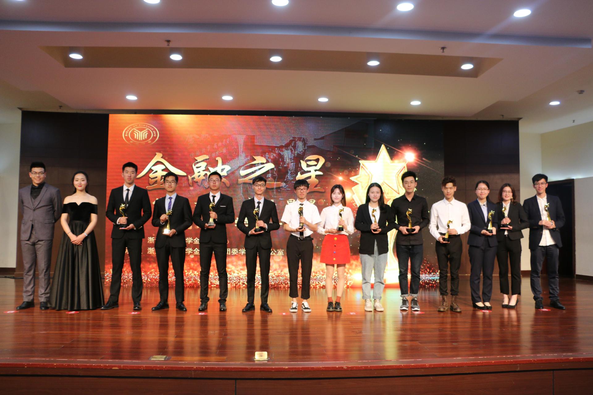 颁奖典礼上最先公布的是金融之星个人奖和提名奖,10位获奖同学依次上台接受嘉宾的颁奖,通过演讲和访谈等的方式展示个人风采。他们和在场的师生分享了自己的学习生活心得,生动的讲述了属于自己的大学故事。获得了全场师生的高度评价。