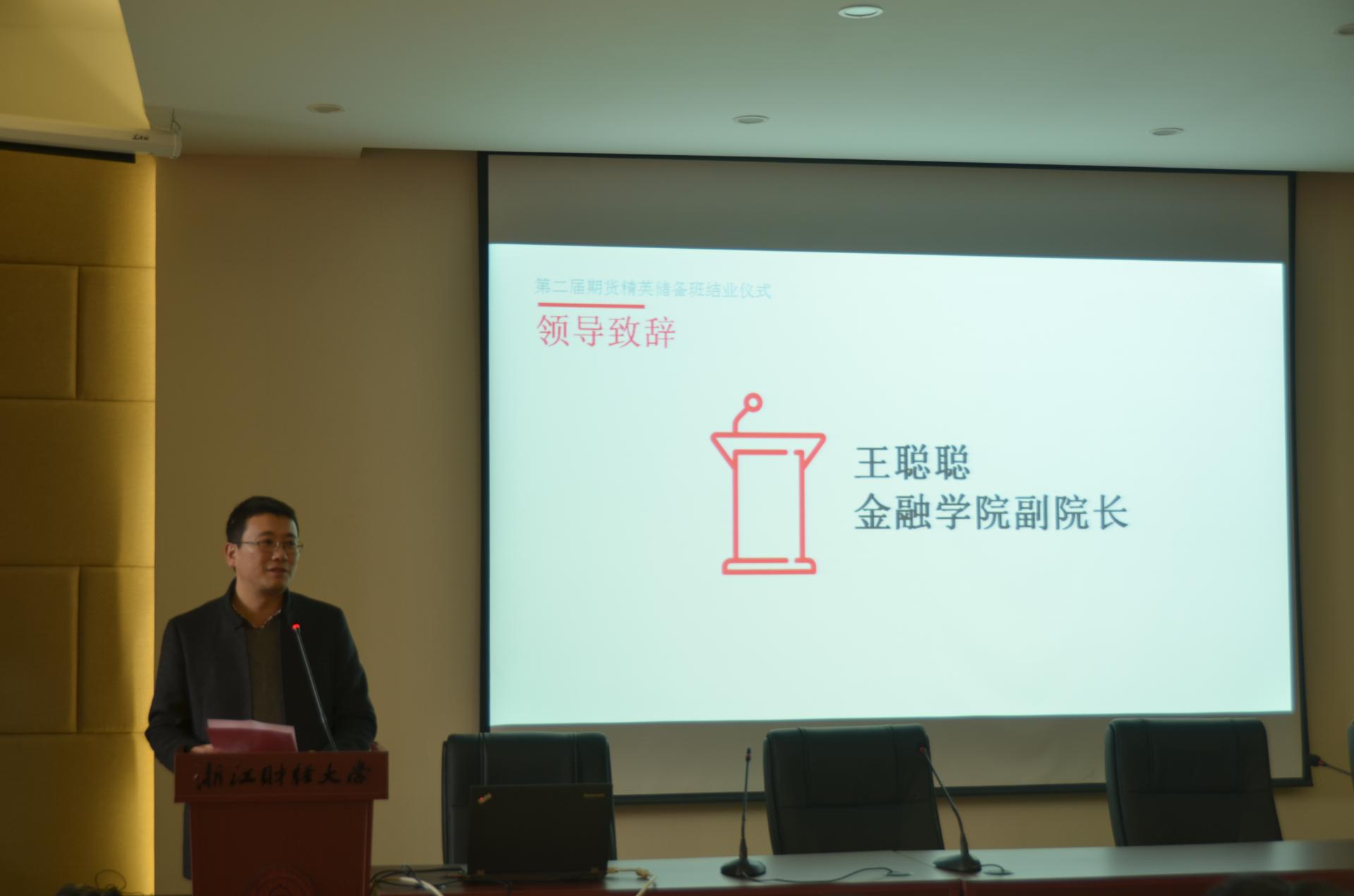 副院长王聪聪致辞,他对在本次精英储备班中取得优异成绩的同学表示了祝贺,对开课期间辛勤付出的老师以及工作人员表达了感谢。