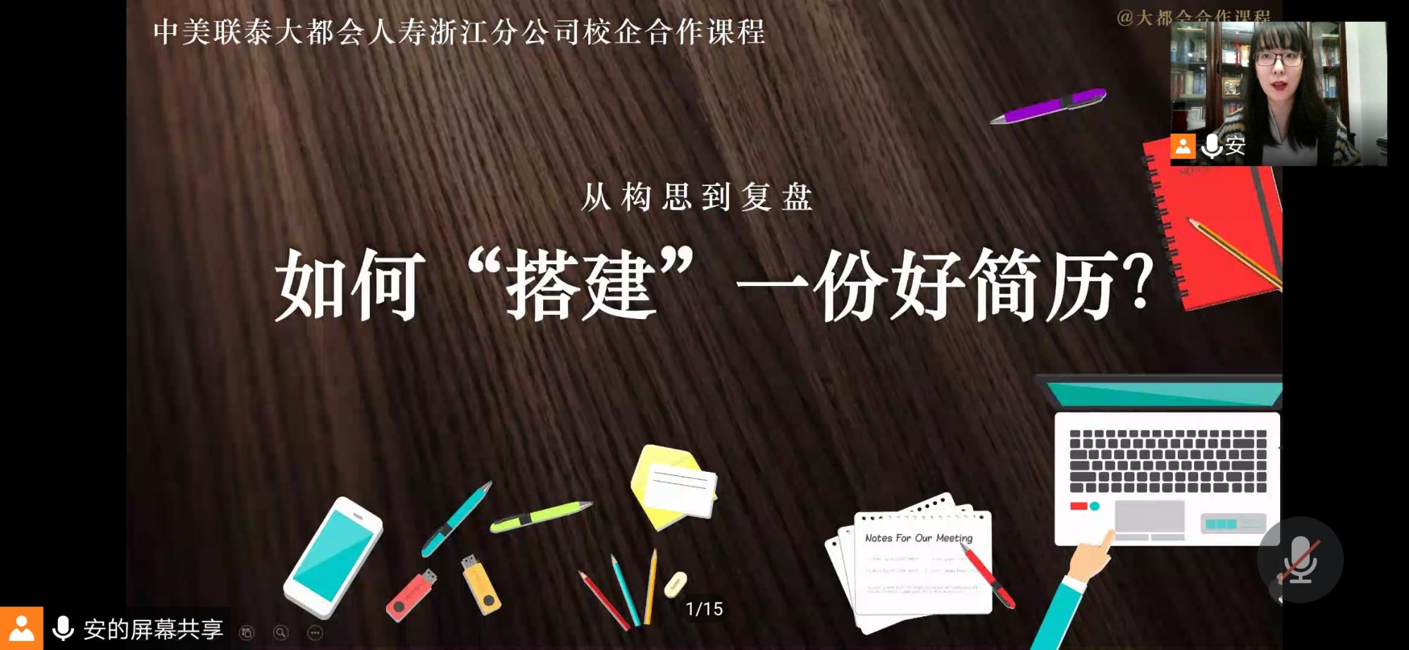 特邀大都会人寿浙江分公司人事主管任艺老师在腾讯会议为同学们进行线上求职简历培训。