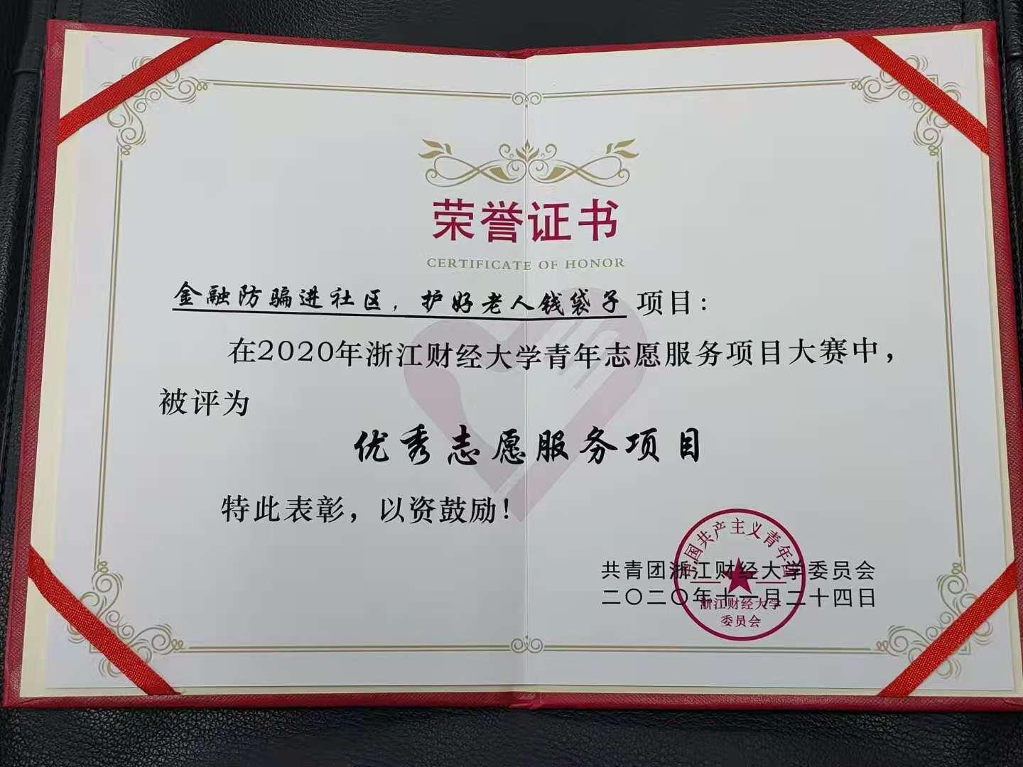 青志的“金融防骗进社区,护好老人钱袋子”活动被评为“校优秀志愿项目”,猫都论坛