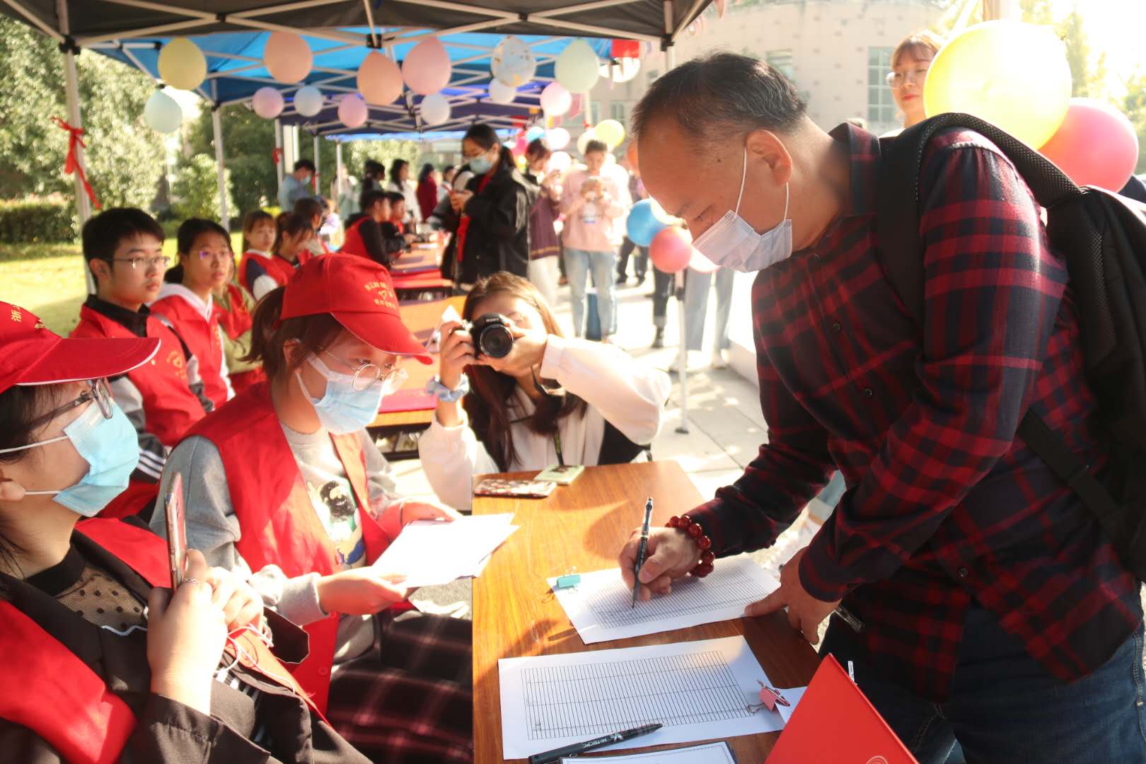 的师生们怀着满腔热情迎接来自五湖四海的财大校友们返校回家。