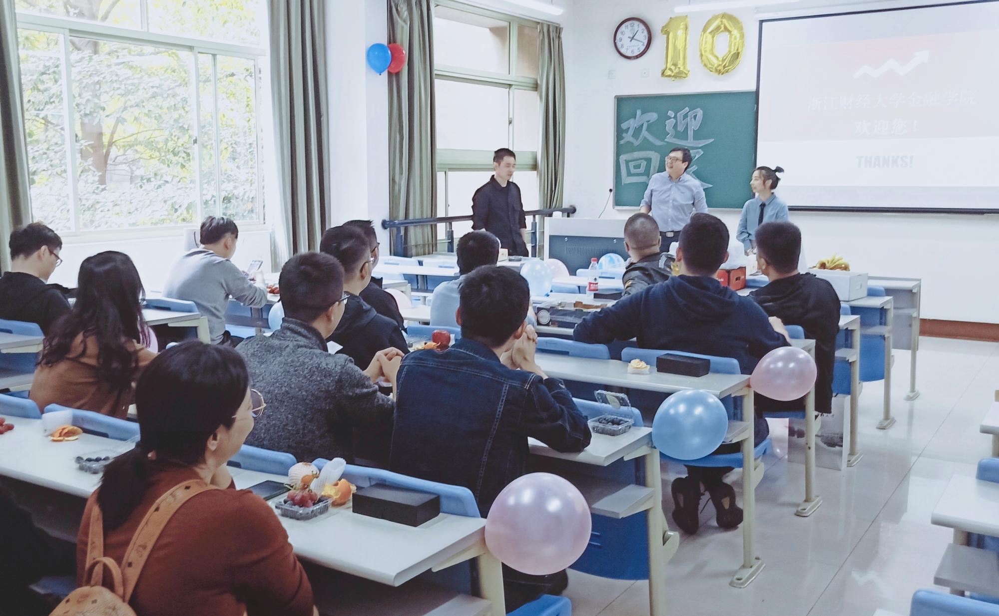90届校分享会在学院楼102教室举行。顾敏、冯勍骋、沈伟林、苏继红、李云峰、应进程、易伟光、陈美菊、华凌云、韩国辉等10位校友分享了他们的人生阅历、创业故事和生活态度,回忆在浙财大的美好时光,他们感慨万千。