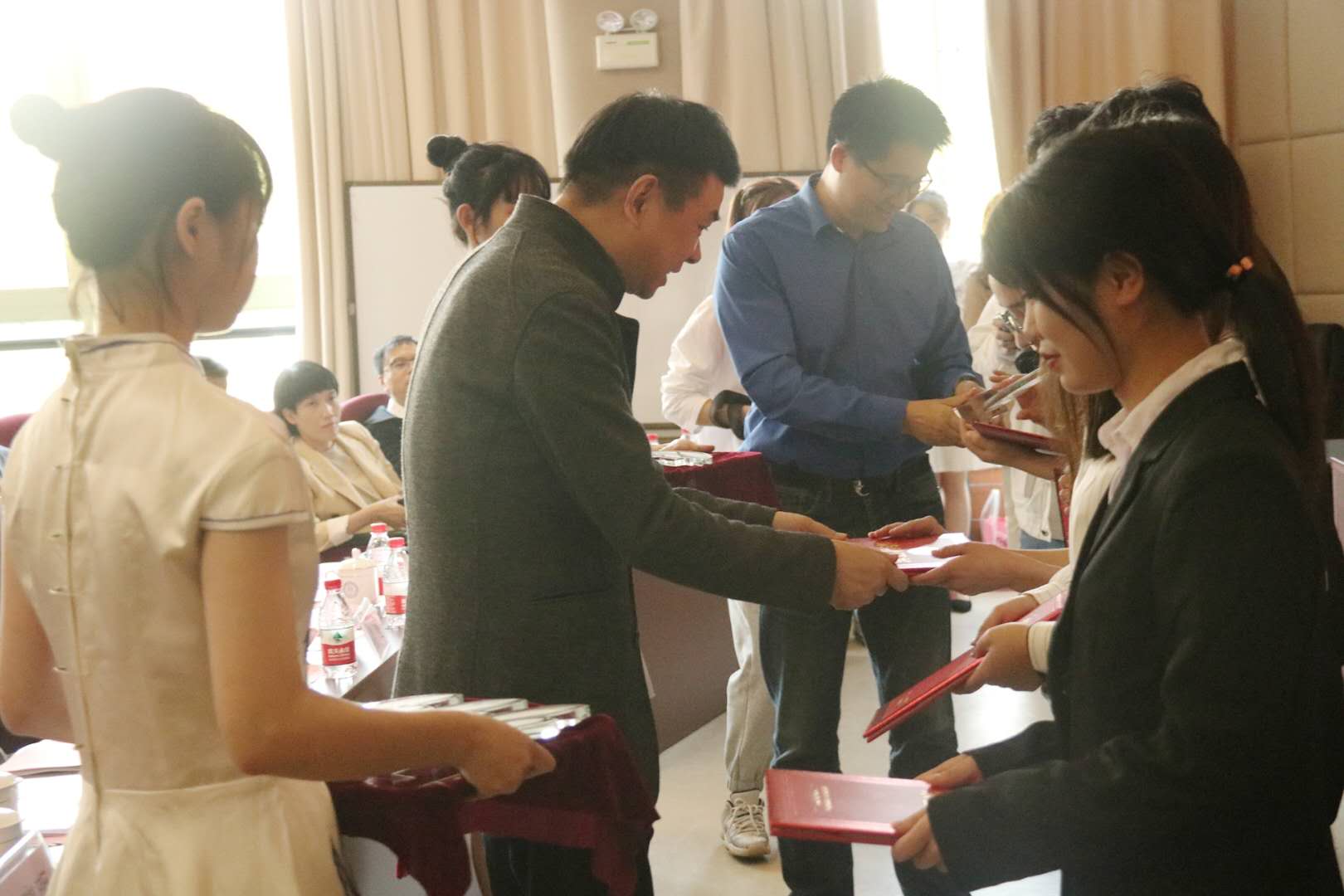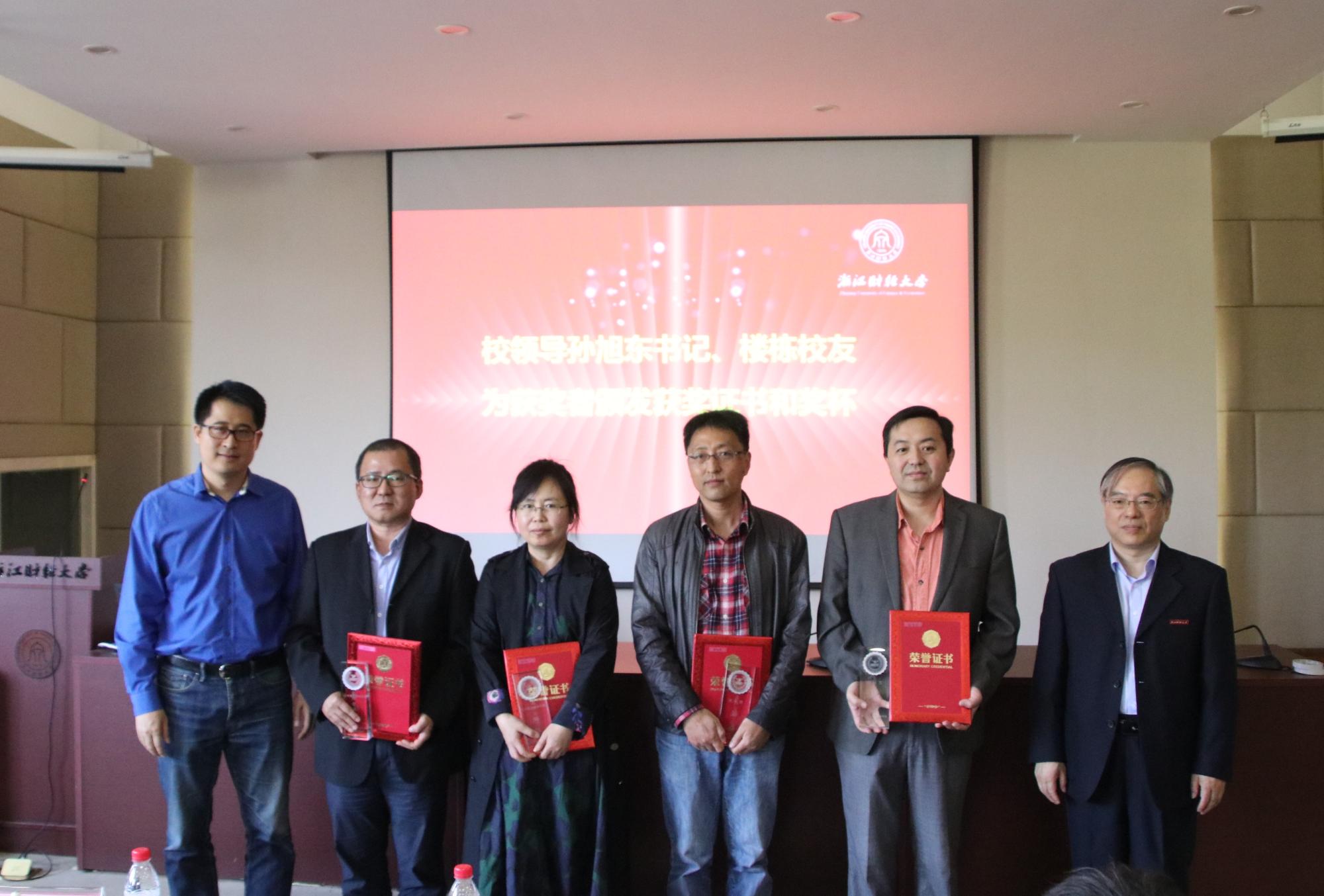 「楼栋校友为获奖老师颁奖」