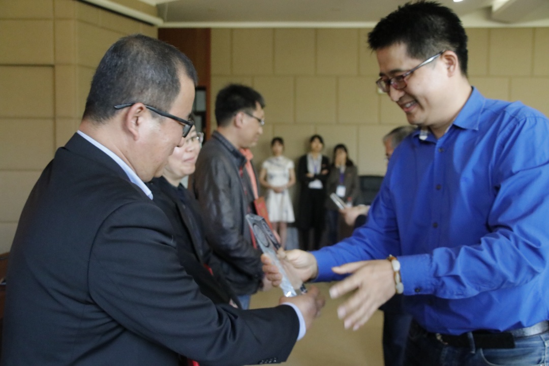 经评审,朴哲范老师、阎晓春老师分别获得2020年盈阳金融突出贡献奖教学类银奖;钟立新老师、耿中元老师分别获得科研与社会服务类银奖。孙旭东书记、楼栋校友为获奖老师颁发了获奖证书及奖杯。