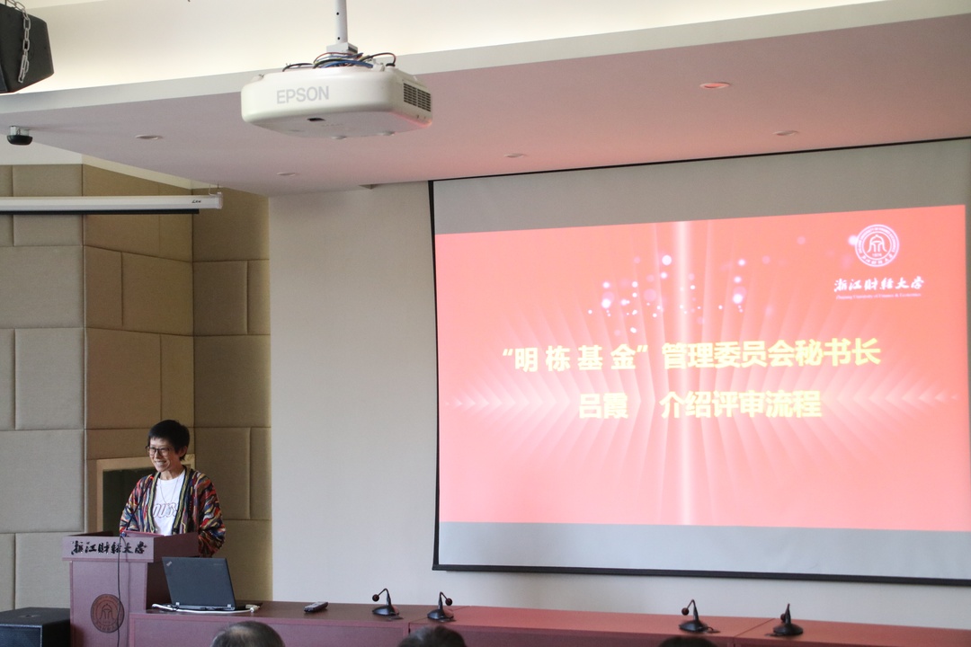 “明栋基金”管理委员会秘书长吕霞校友介绍了此次助学奖评审流程。