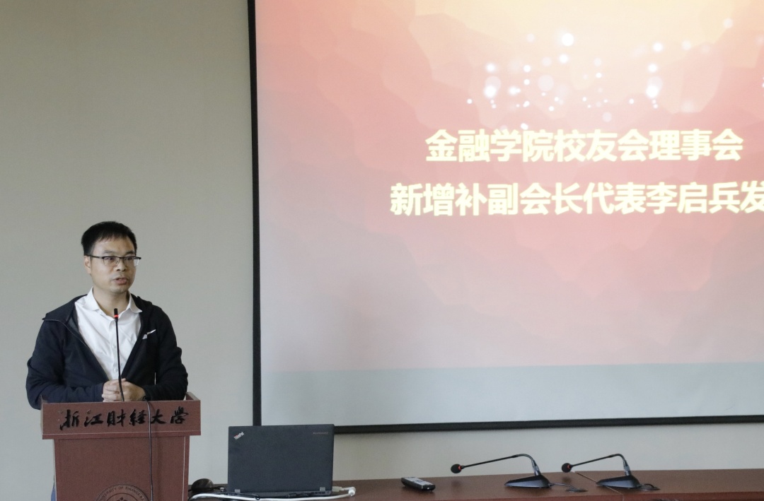 校友会新增补副会长代表李启兵发言」