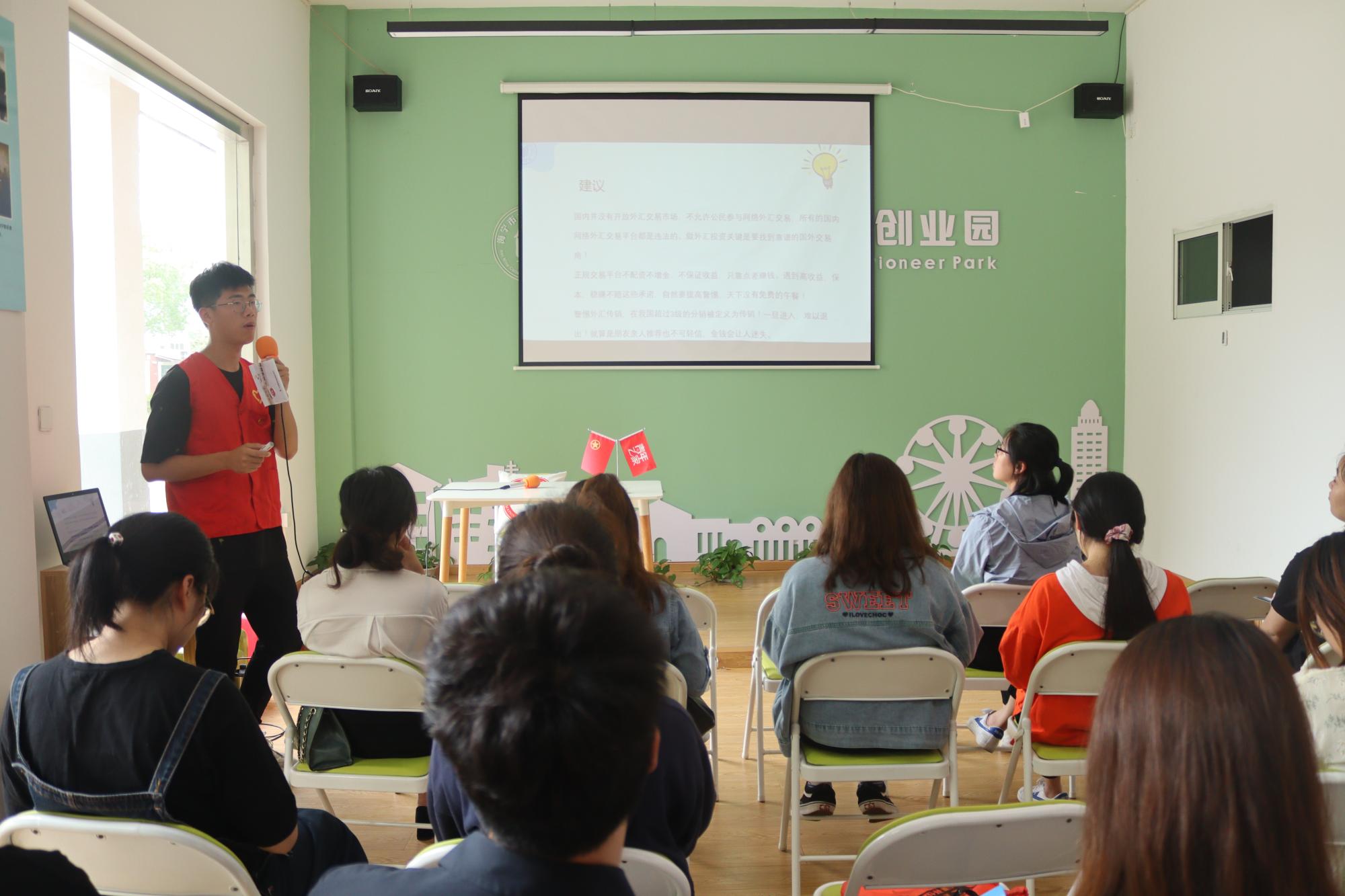 在海洲街道“青年之家”,青年志愿者中心成员对参加活动的创业青年进行调查问卷,了解受众金融知识面及对讲座的期望。根据问卷反馈情况,青志成员徐顺展、葛相宇和章域分别围绕“股票基金基本知识介绍”“普通人为什么赚不到钱?”以及“如何成为投资幸存者?”三个主题深入浅出的为大家普及了基本金融知识,并详细分析了股票和基金投资衍生出来的诈骗形式,提醒大家理性投资、谨防诈骗。