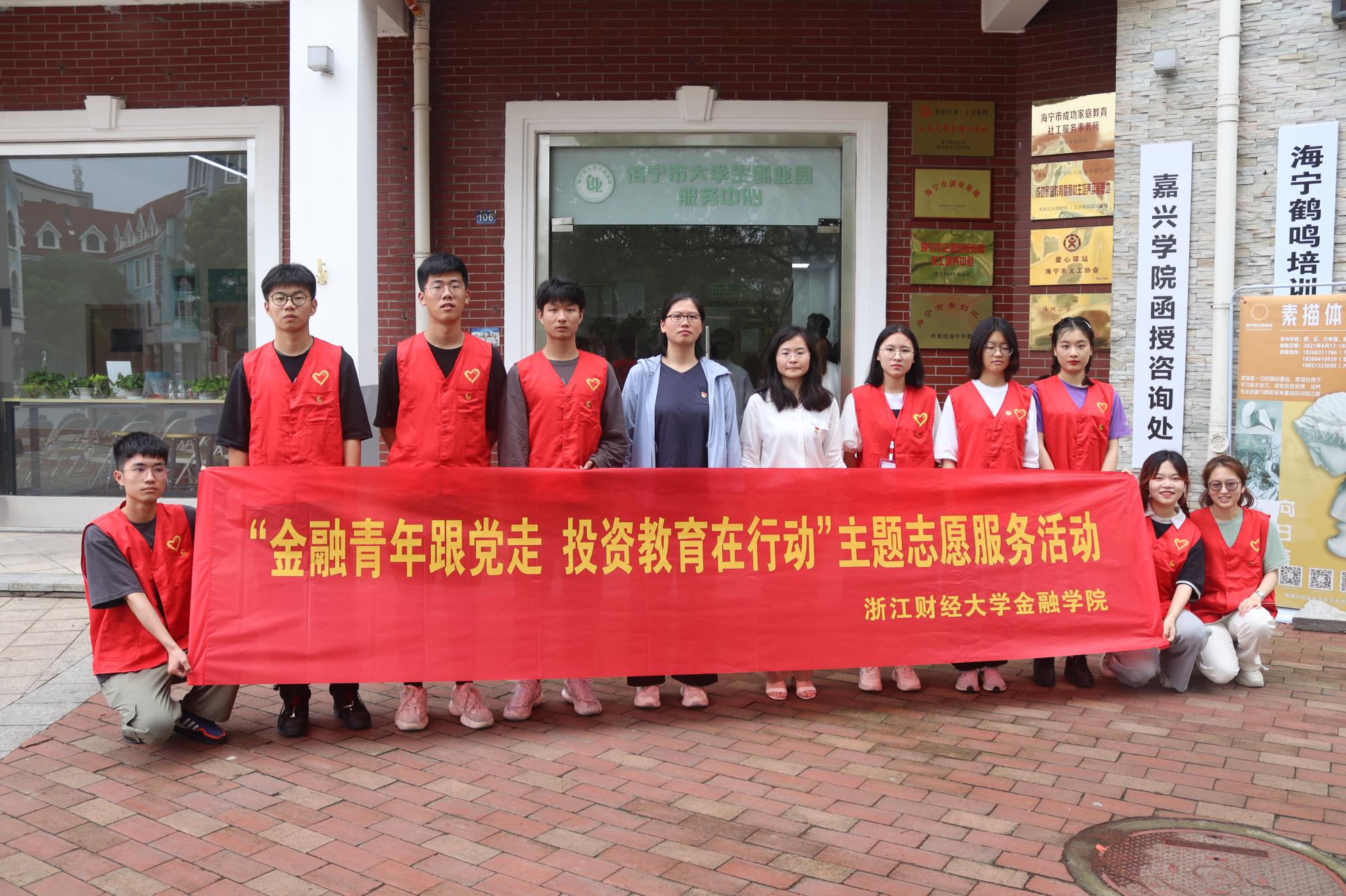 专业教师邵玲洁、学院团委书记王伟伟与学院青年志愿者中心成员一同前往海宁市创业园开展“金融青年跟党走,投资教育在行动”主题志愿服务活动。