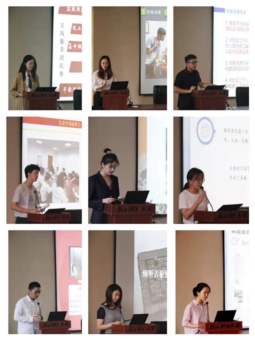 暑期社会实践成果评审答辩会在学院楼202报告厅顺利举行。学院团委书记王伟伟、专职组织员翟丽媛、学生工作办公室副主任谢琳、辅导员陈信、沈晓云、李文生、卢轩宇、廖丁瑶、刘仰璟及实践团队全体成员参加了此次评审答辩会。