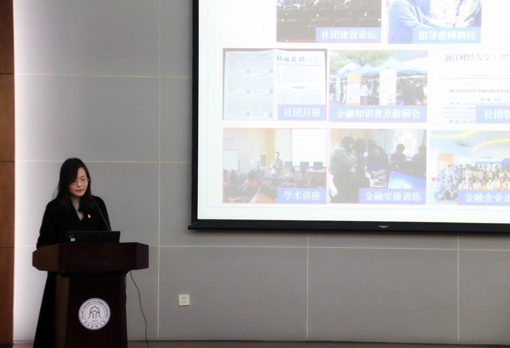团委书记王伟伟以《金鹰青年团结奋进创佳绩,金融团学高举旗帜领青春》为题,汇报了猫都论坛