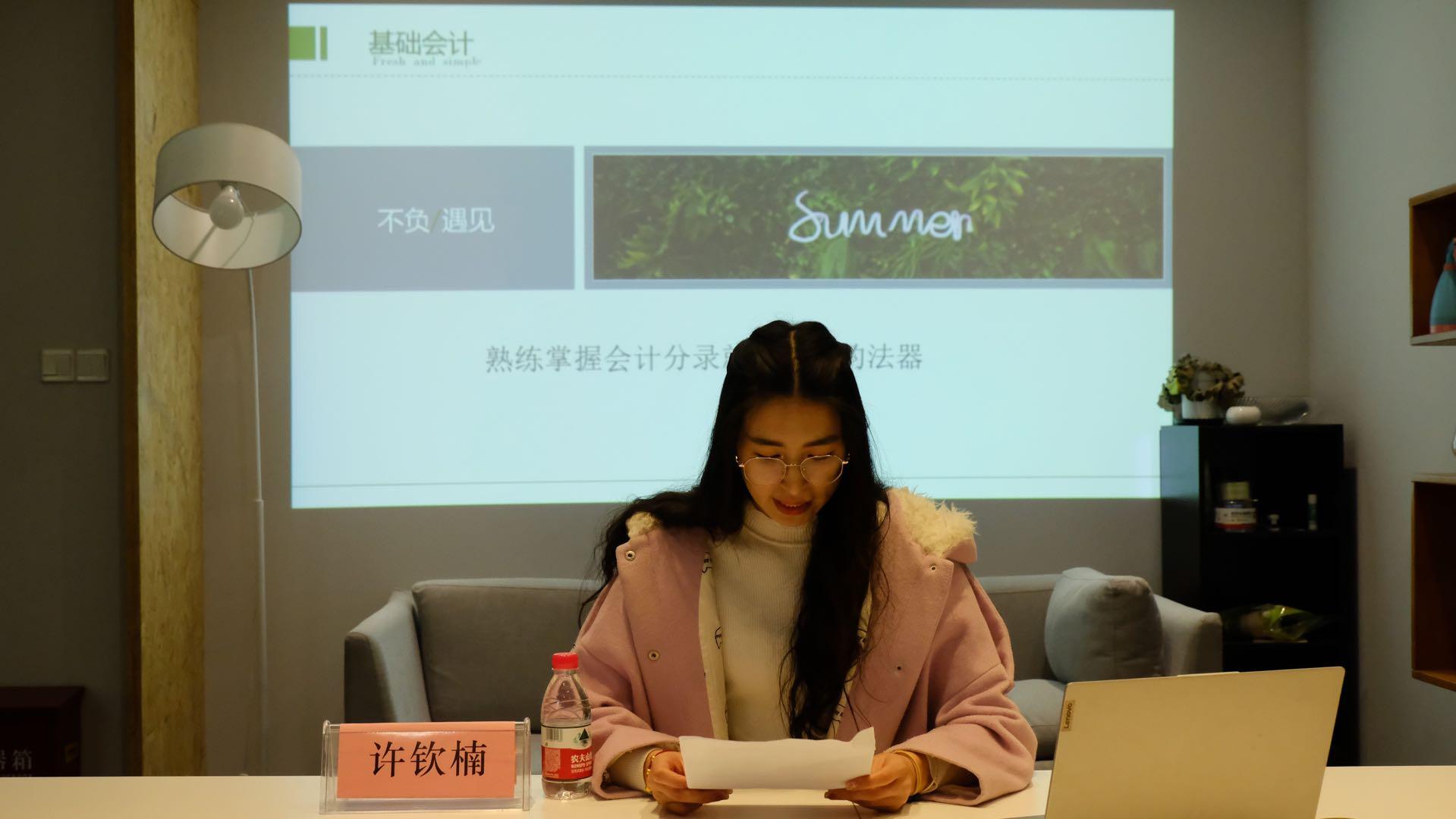 在学习经验分享主题上,20金融2班许钦楠同学分享了自己的经验。她从总体成绩提升和单科成绩提升两个方面,层层深入分享了她独特的学习方法,同时还强调了针对不同科目采用不同学习方法的重要性。此外,她还与大家分享了自己座右铭“这世上有两种东西是别人永远也抢不走的:一是藏在心中的梦想,二是读进脑子里的书”。