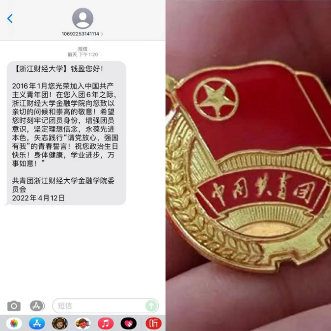 972位学子收到了学院团委发送的“入团纪念日”短信。正值节日前夕,收到这条特别祝福短信,同学们深受鼓舞,也倍感温暖,纷纷晒出照片,表达着自己的热烈情感。