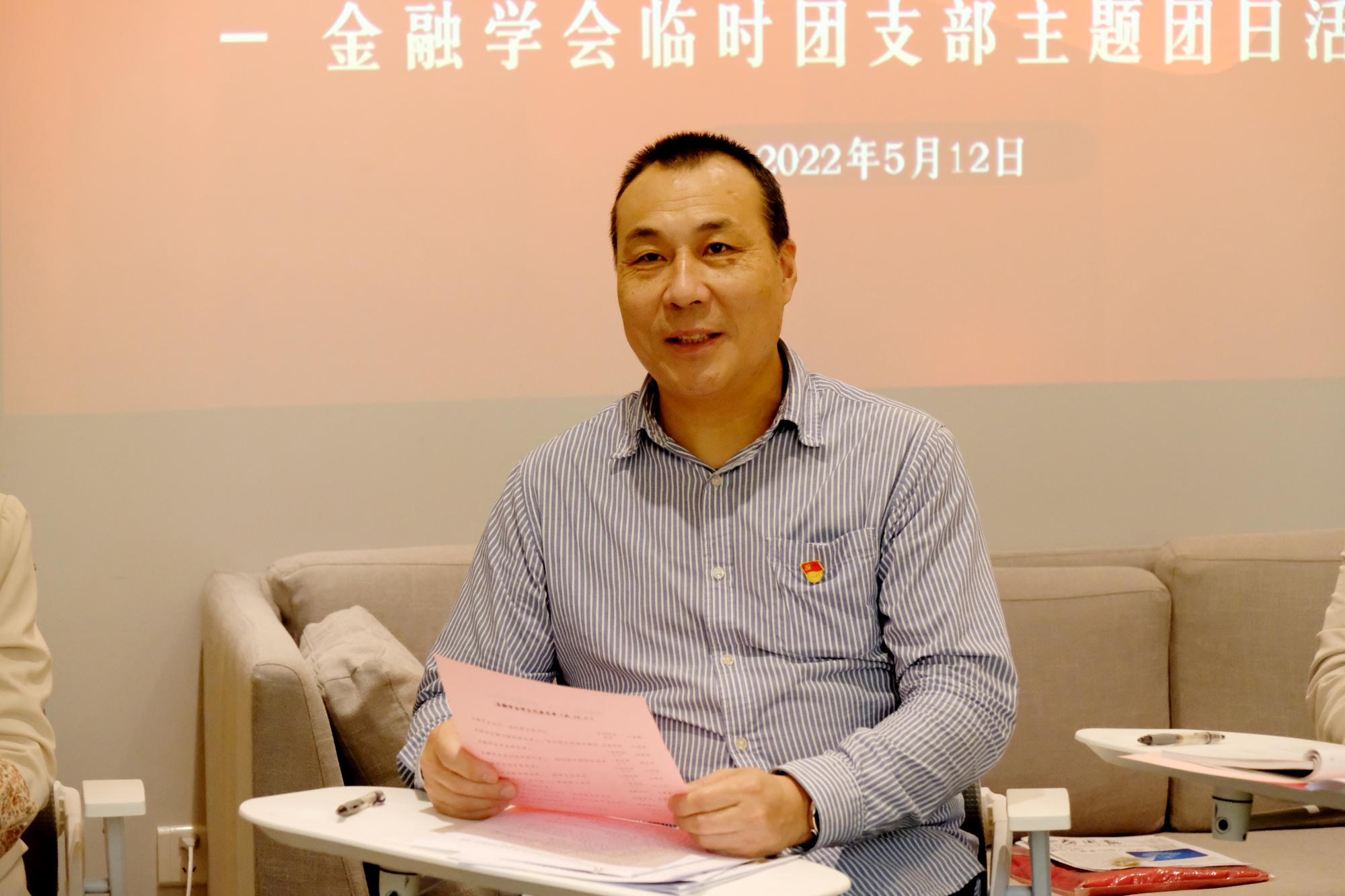 随后,学会临时团支部开展了“青春献礼二十大、扬帆逐梦新征程”主题团日活动,李书记参与其中,和同学们一起学习了习近平总书记在中国共产主义青年团成立100周年大会上的重要讲话精神,并结合习近平总书记讲话中的“金句”,从“实现中华民族伟大复兴”“建设社会主义现代化国家”“实现全体人民共同富裕”的角度,鼓励青年要为社会发展做出贡献,为奋斗做好准备。
